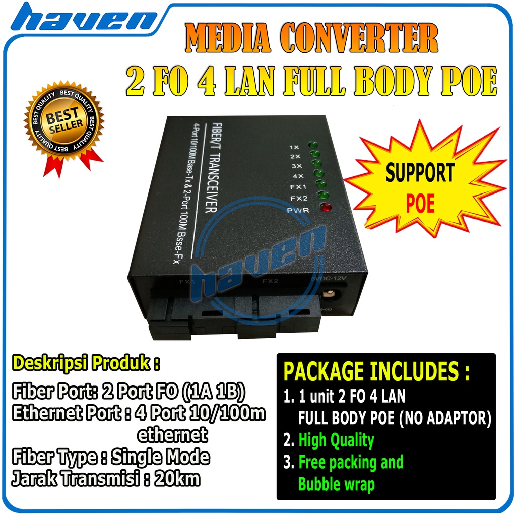 Media Converter 2 Port FO 4 Port LAN 10/100 / 2 FO 4 LAN Support POE