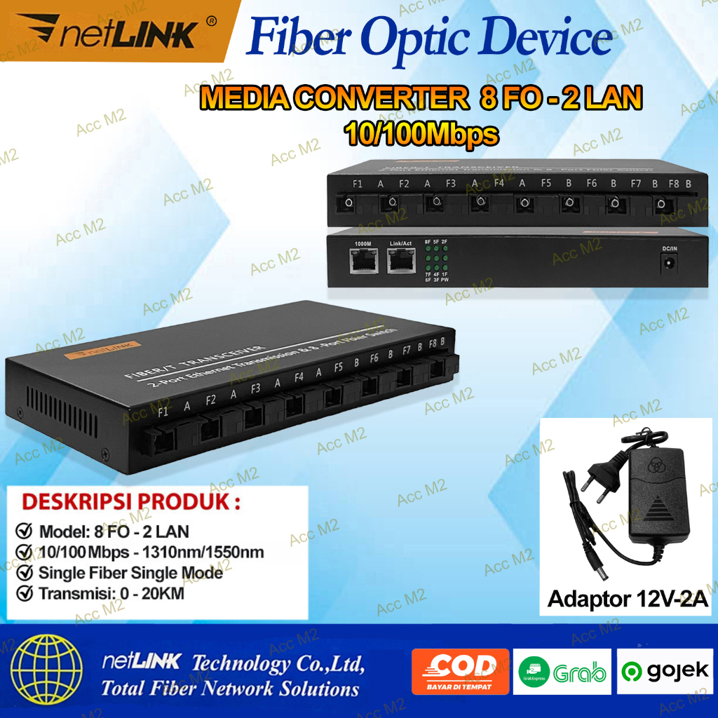 Media Converter Fiber Optic NETLINK 2 FO 2 LAN, 2 FO 4 LAN, 2 FO 6 LAN, 3 FO 3 LAN, 4 FO 4 LAN, 4 FO 2 LAN, 6 FO 2 LAN, 8 FO 2 LAN 10/100 Ethernet Fiber Optic Netlink