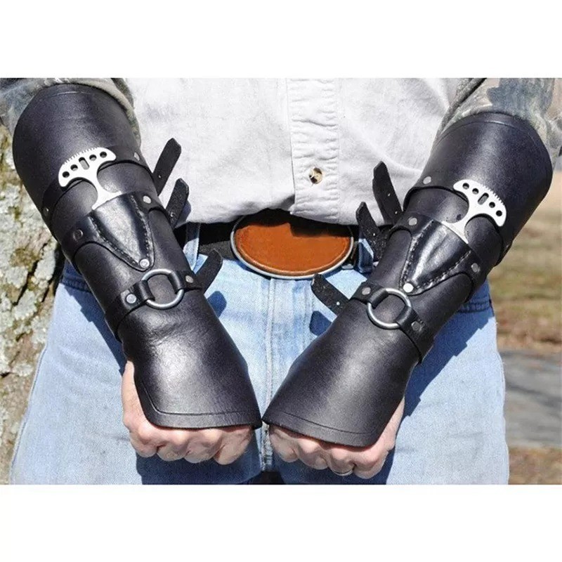 Medieval Leather Arm Guards Armor Bracers Men Viking Warrior Knight Gauntlet Wristband Wide Cuff LARP Cosplay Steampunk Gloves