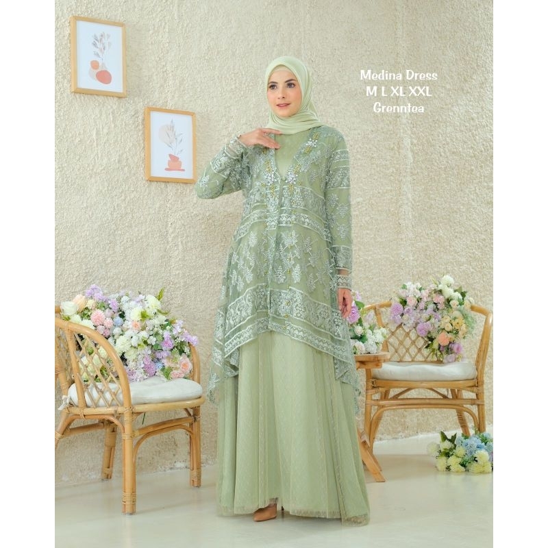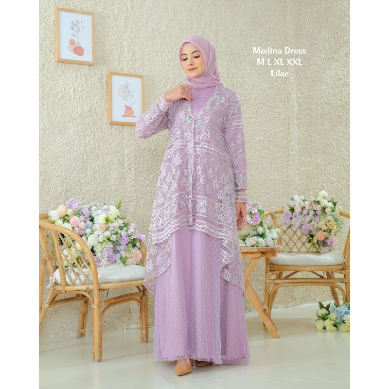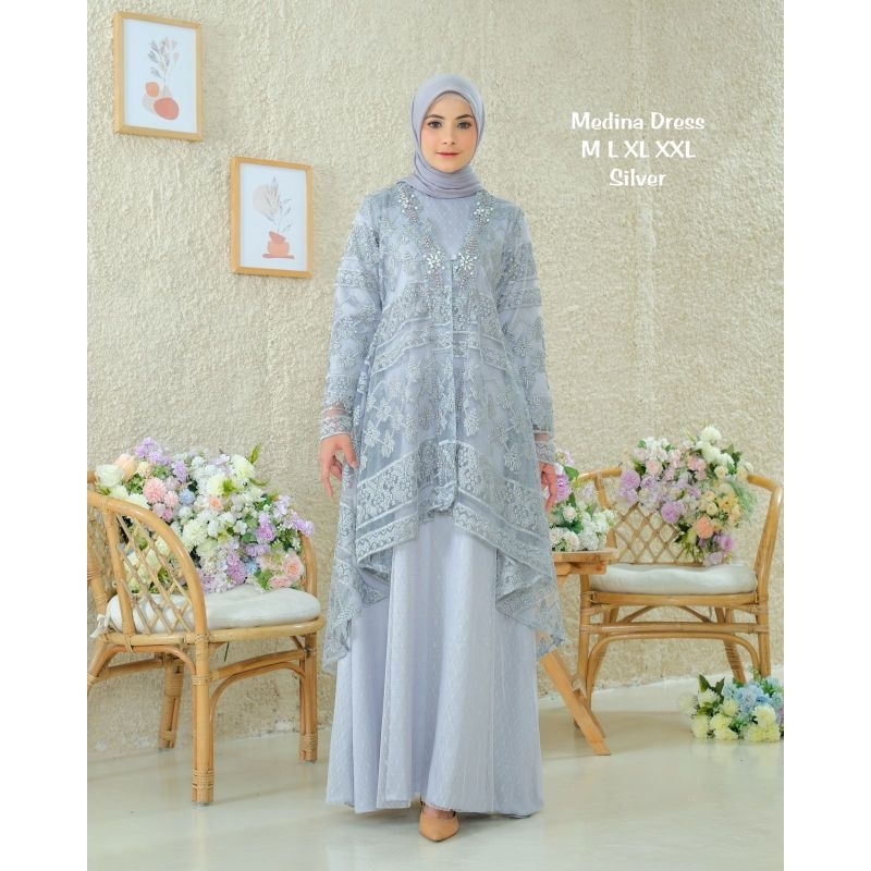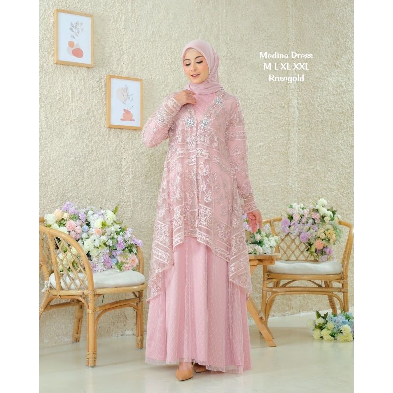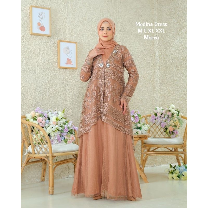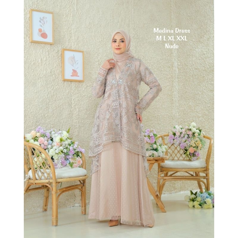Medina Dress Original / Gamis Brokat Pesta / Dress Pesta / Gamis Kekinian / Dress Brokat Kekinian / Dress Mewah