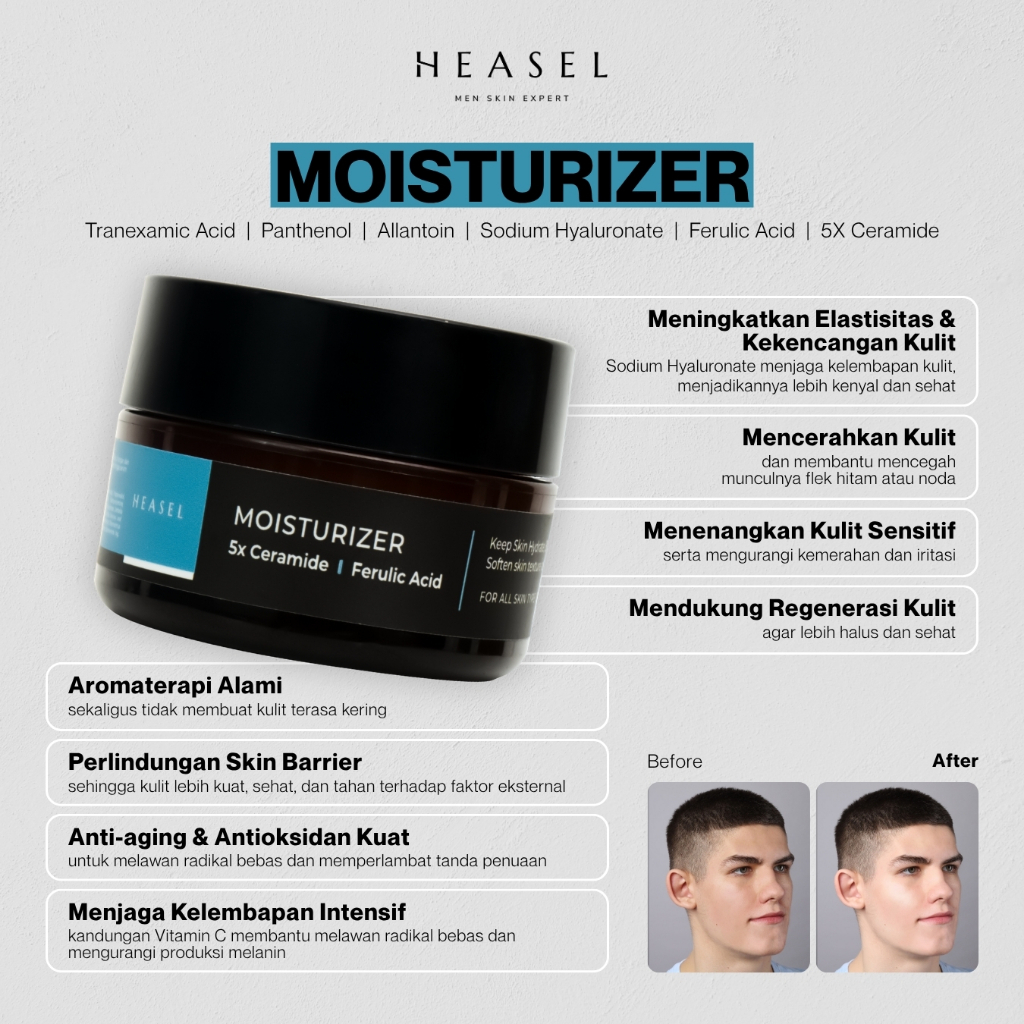 HEASEL Moisturizer Pria 5X Ceramide Mencerahkan Melembapkan dan Mengurangi Flek Hitam