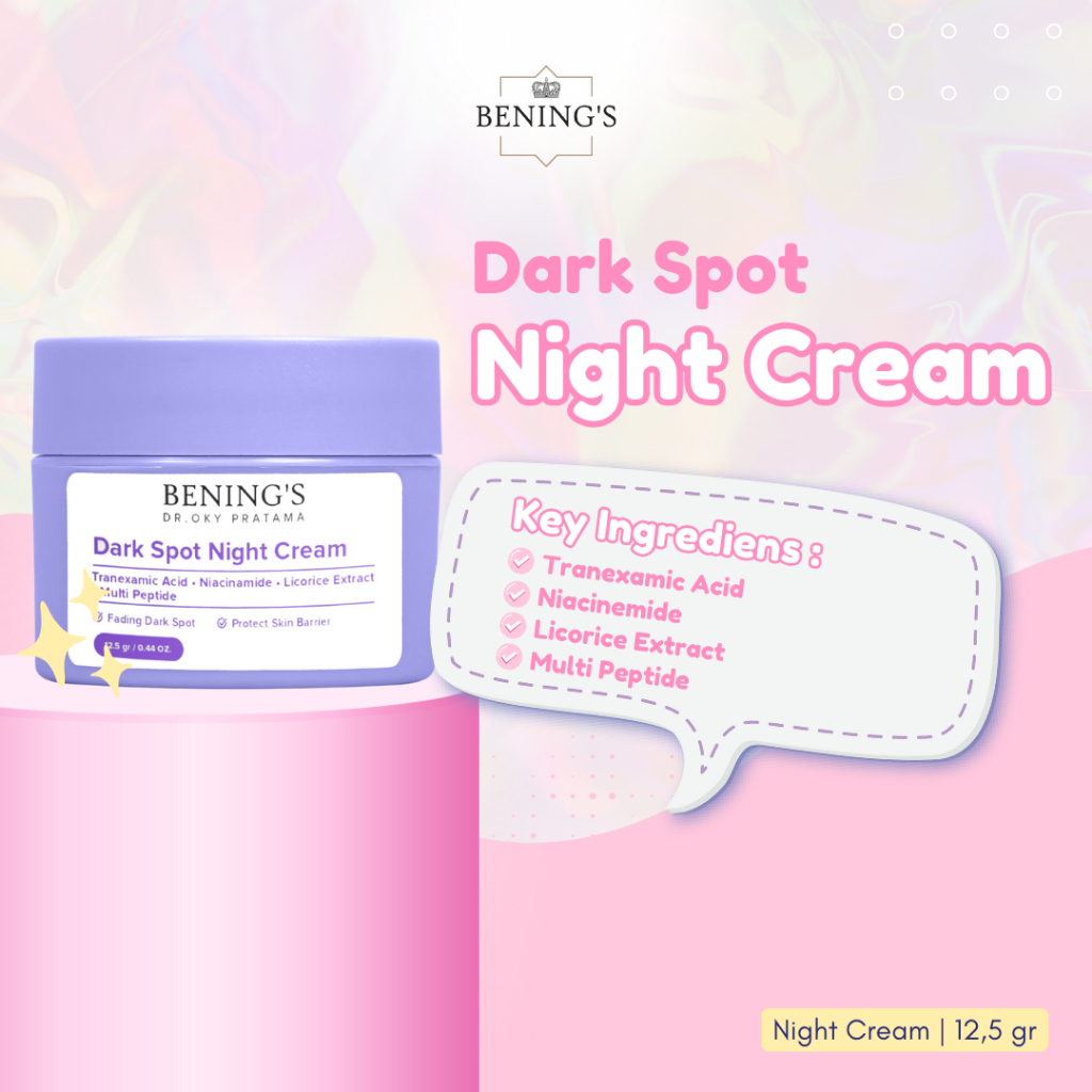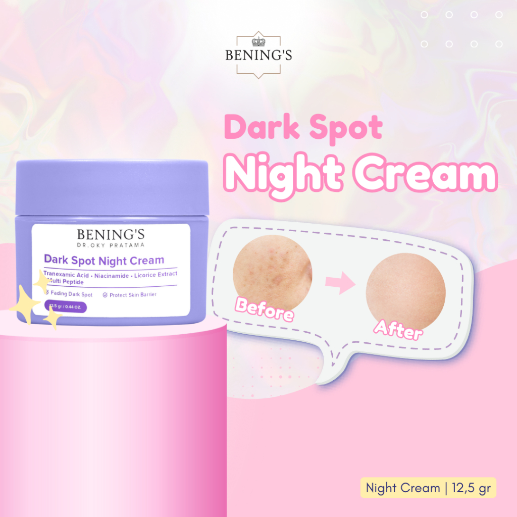 Benings Skincare Dark Spot Night Krim Malam Pembersih Noda Hitam Pencerah Wajah Glowing Penghilang Garis Halus Muka Skincare BPOM Halal Untuk Wanita dan Pria Original Benings Clinic Official