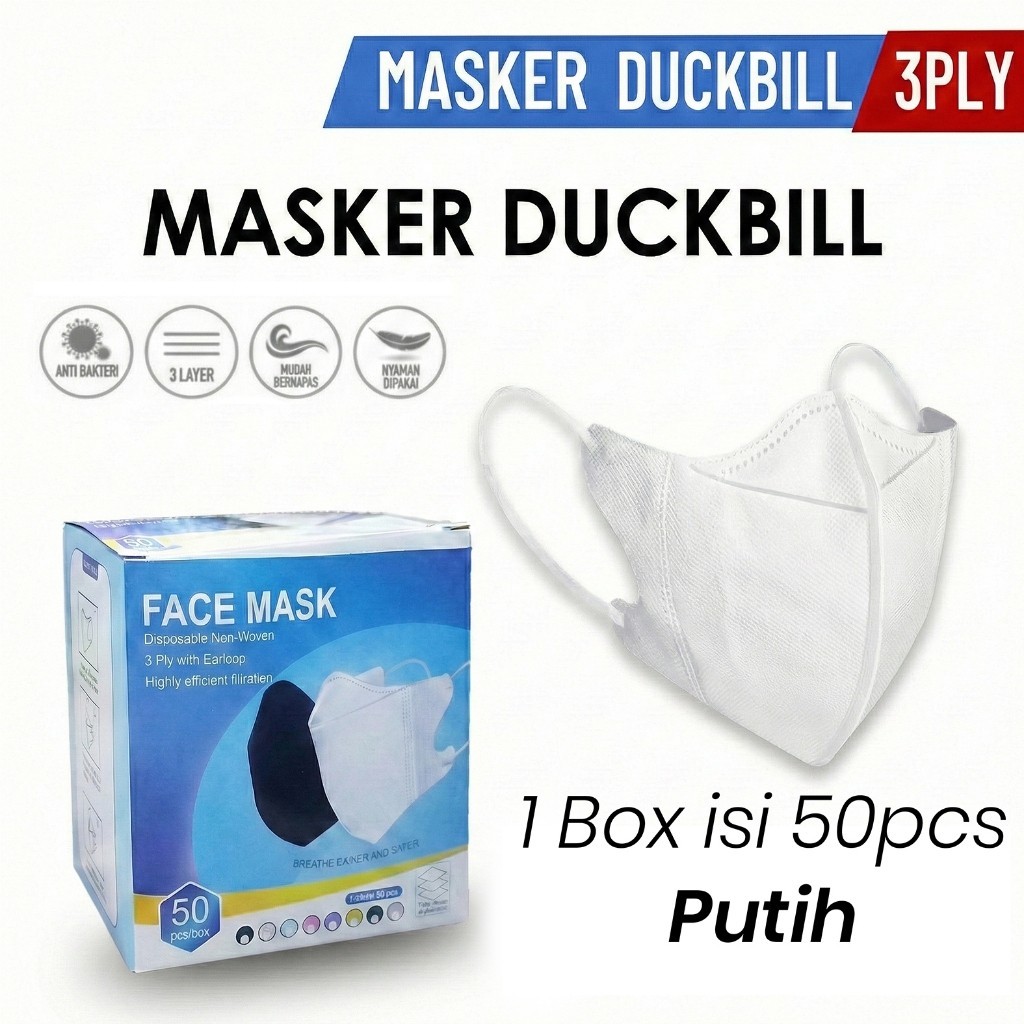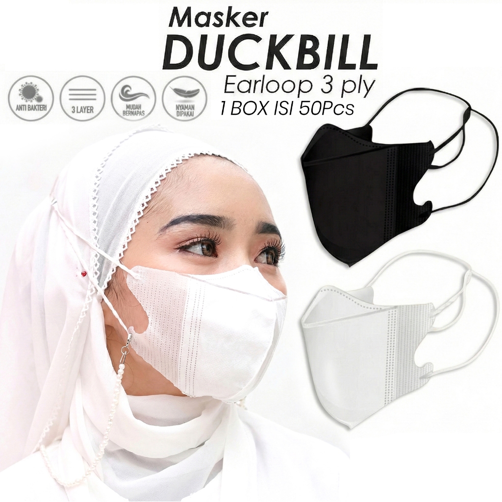 masker duckbill Tebal facemask 3 ply isi 50 pcs per kotak warna hitam putih termurah terlaris