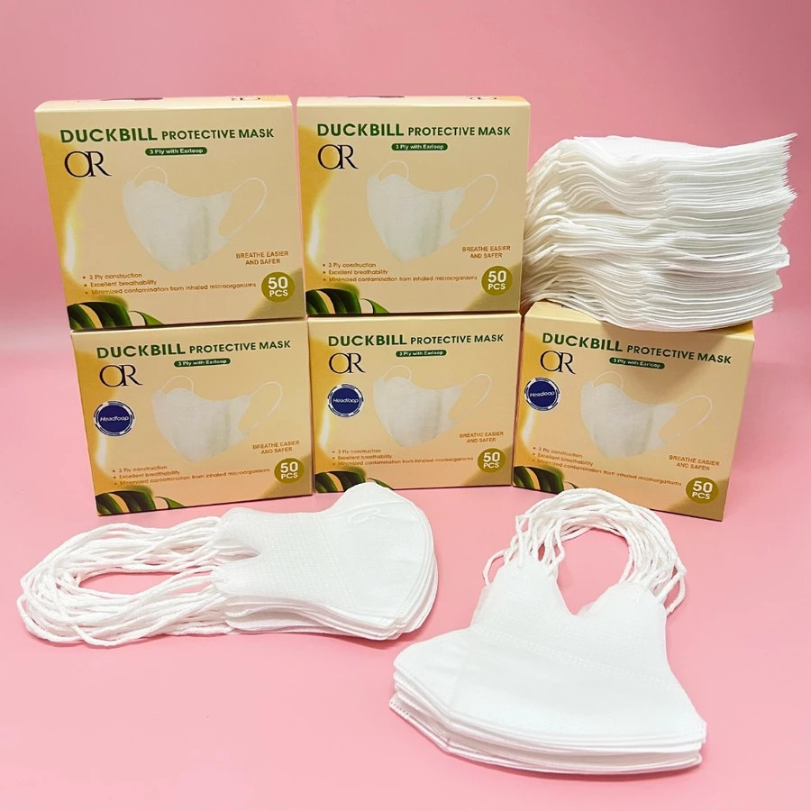 1 Box ISI 50pcs Masker Duckbill Headloop Hijab Merk OR 3ply Dewasa Tali ikat Kepala 1 Box isi 50 Or 3D Disposable FaceMask Face Mask Earloop Duck Bill Embos Or Ringan Nafas Enteng Anti Debu Polusi Droplet Tali Elastis Nyaman Diwajah Hitam Putih by orlee