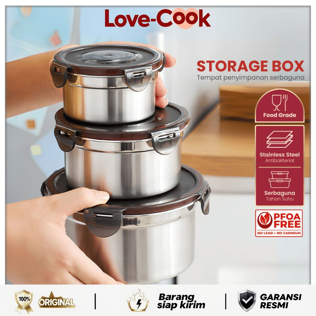 Love Cook-Lunch Box Kontainer Makanan Bulat – Stackable Stainless Steel Food Storage Serbaguna