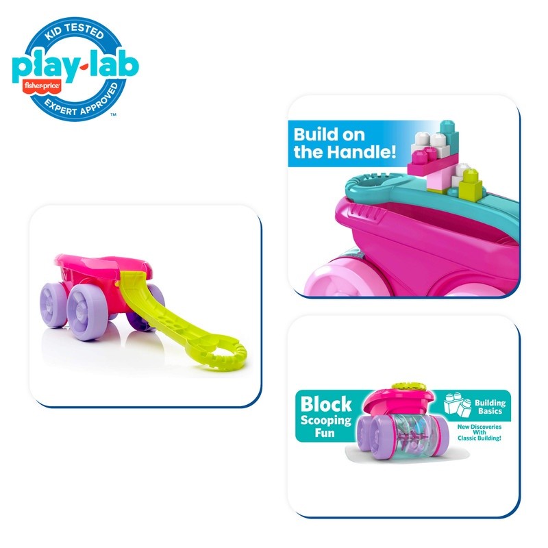 Mega Blocks First Builders Block Scooping Wagon (Pink) - Mainan Balok Susun Edukasi Anak Balita