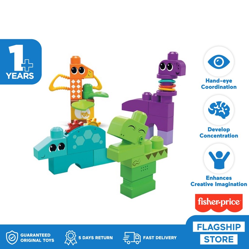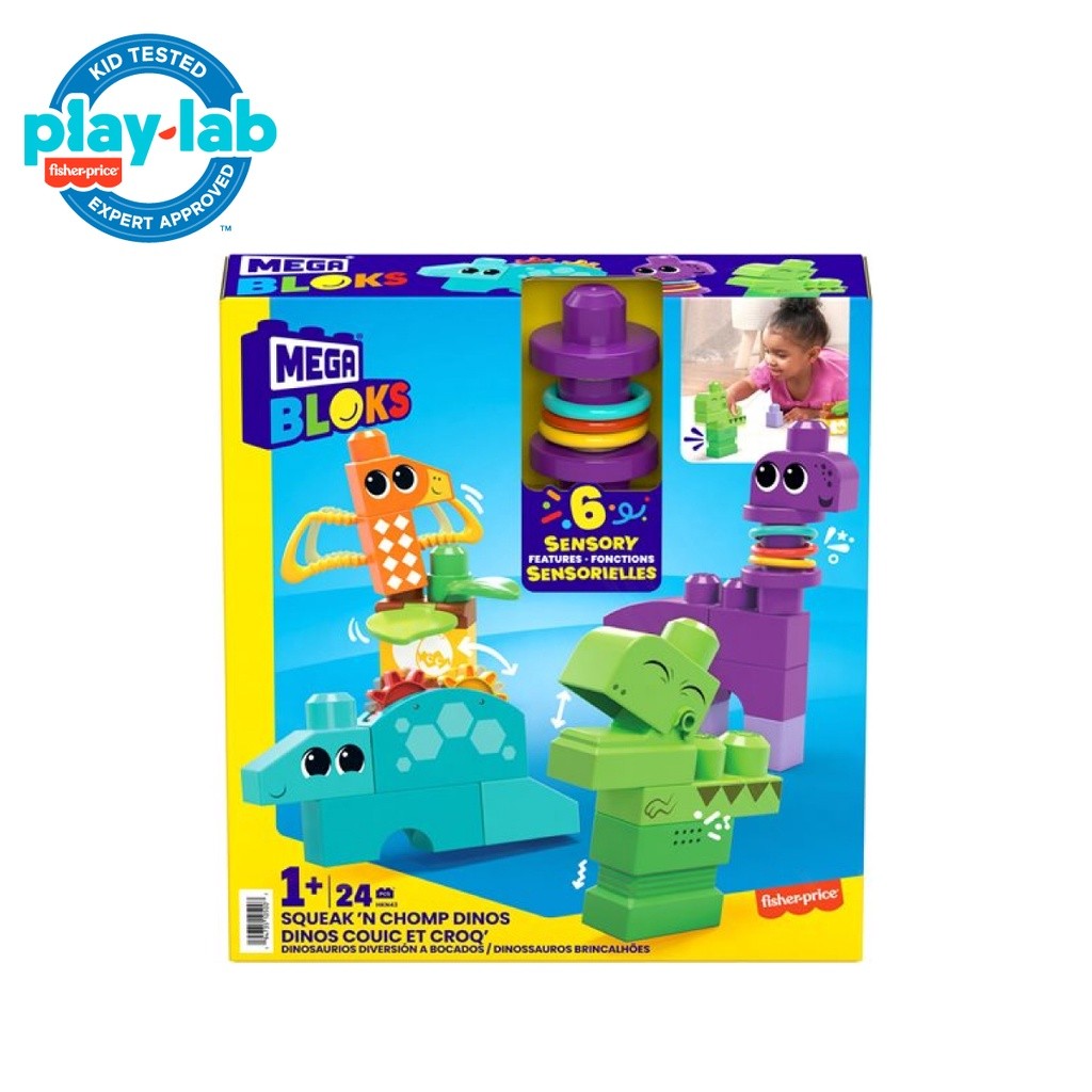 Mega Blocks Squeak 'N Chomp Dinos - Mainan Balok Susun Anak