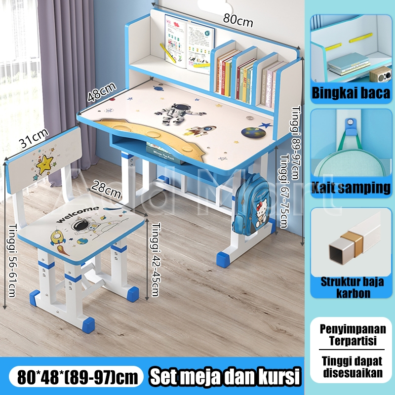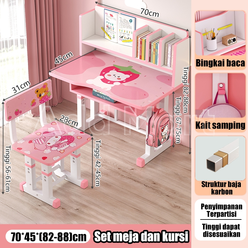 Meja Belajar Anak Set Kursi Meja Tulis Anak Meja Kursi Anak Dilengkapi Rak Buku Untuk Rumah Tangga [Garansi 10 tahun]