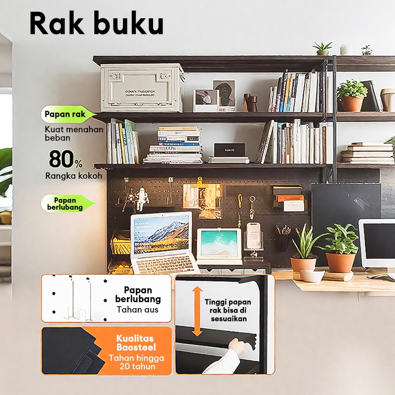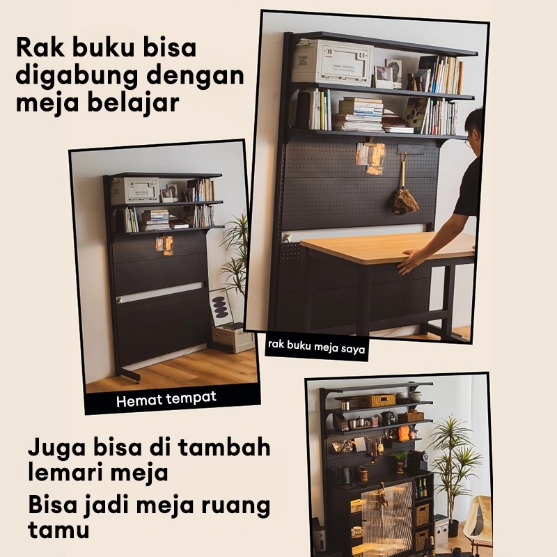 Meja Belajar Dengan Rak Buku Rak Besi Pegboard Diy Rak Yang Dapat Disesuaikan