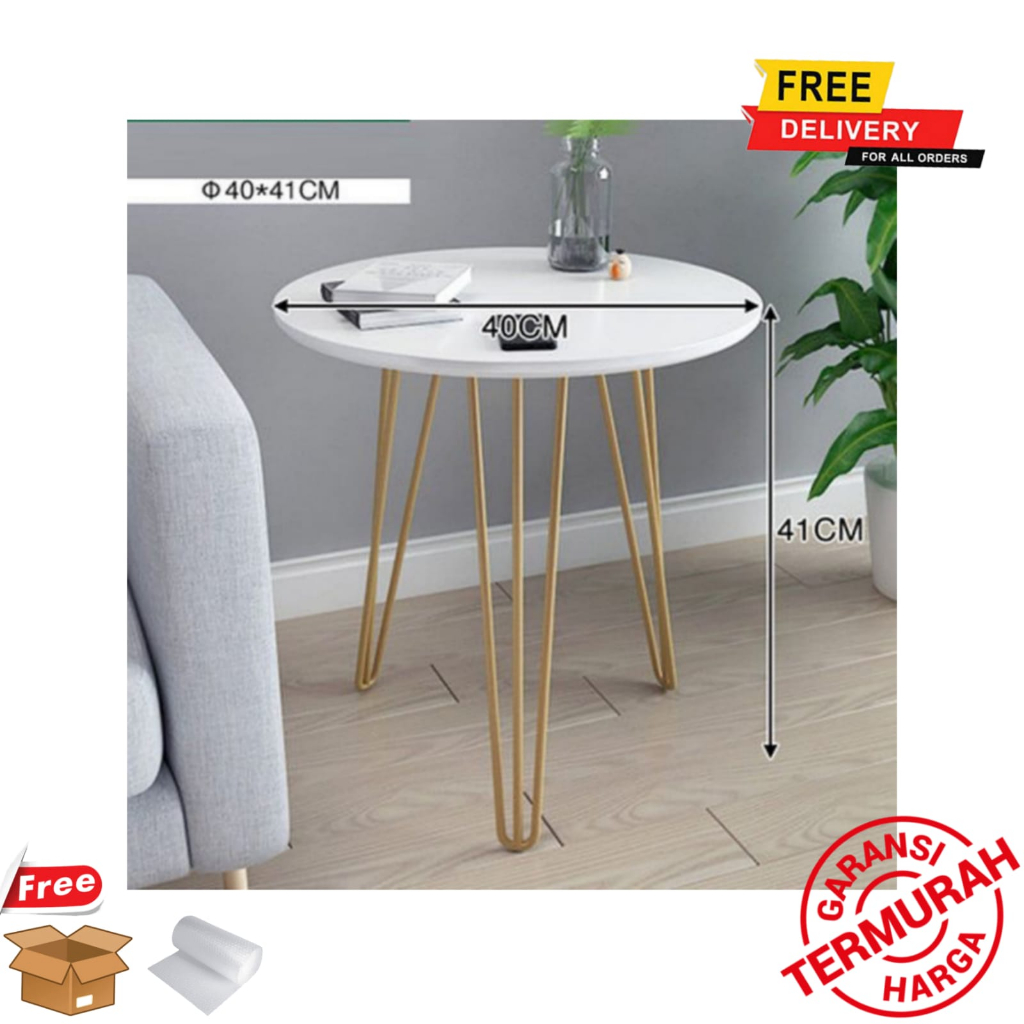 Meja Bulat 40cm Gold / Teras Table Round Coffe Meja Sudut minimalis Cafe Dining meja Kamar / Tamu Tinggi 50 cm