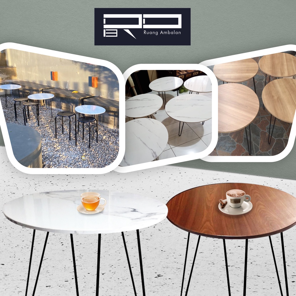 Meja Bulat Cafe Minimalis Meja Kafe Bundar Coofee Table Scandanavian Meja Kopi Ruang Tamu Diameter 60 cm