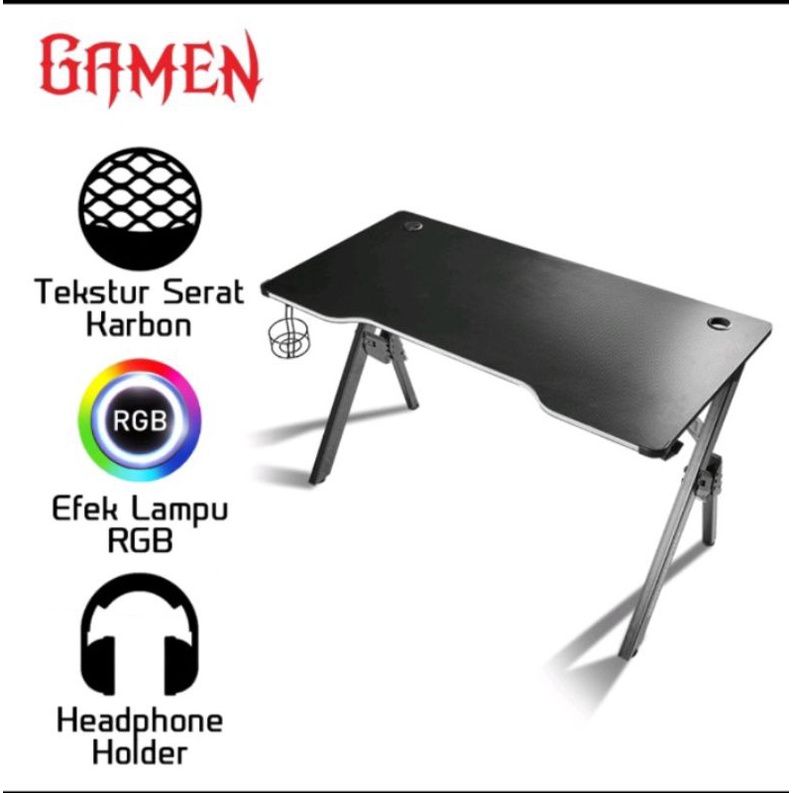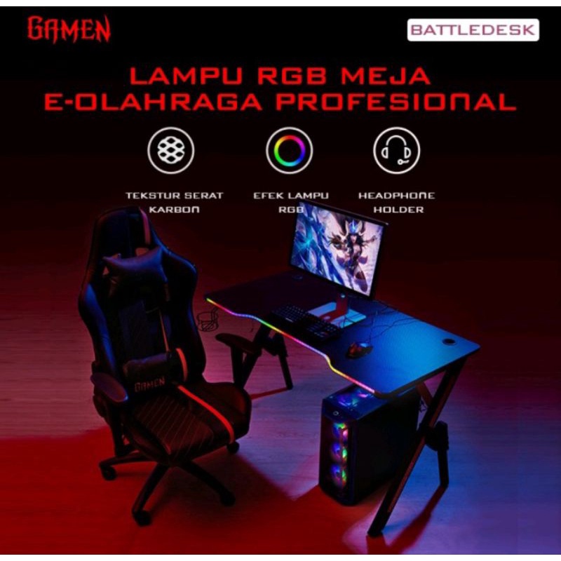 Meja Game GAMEN Gaming Table Battle Desk RGB Black / Meja Komputer / Meja Gaming E-Sport / Meja