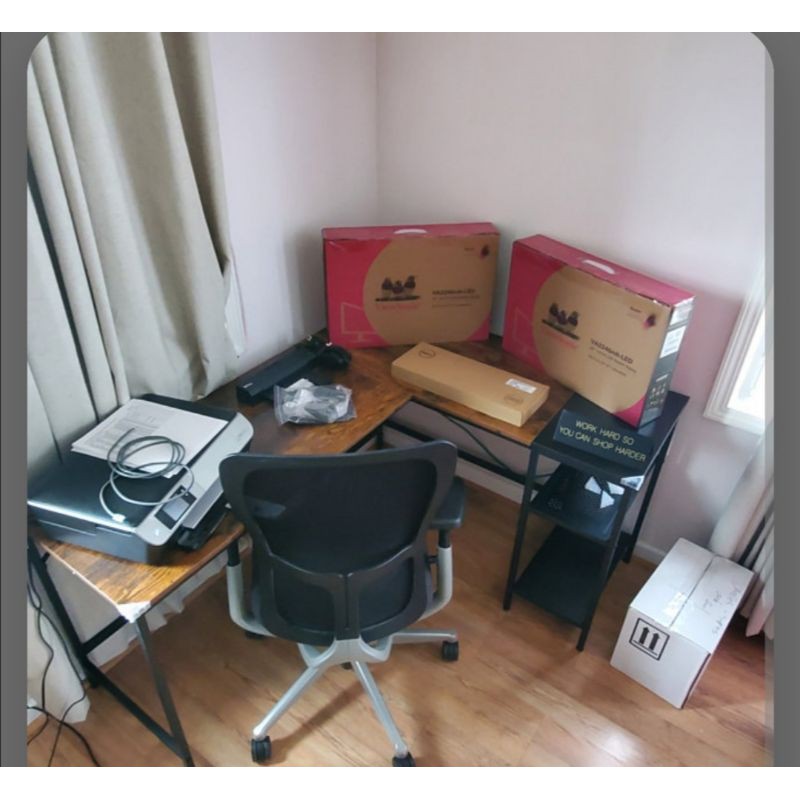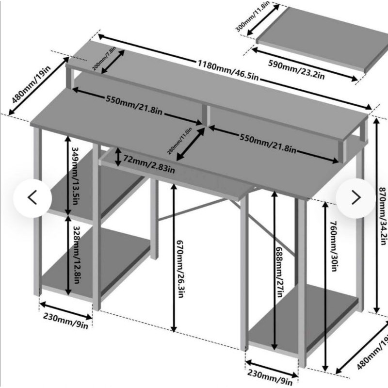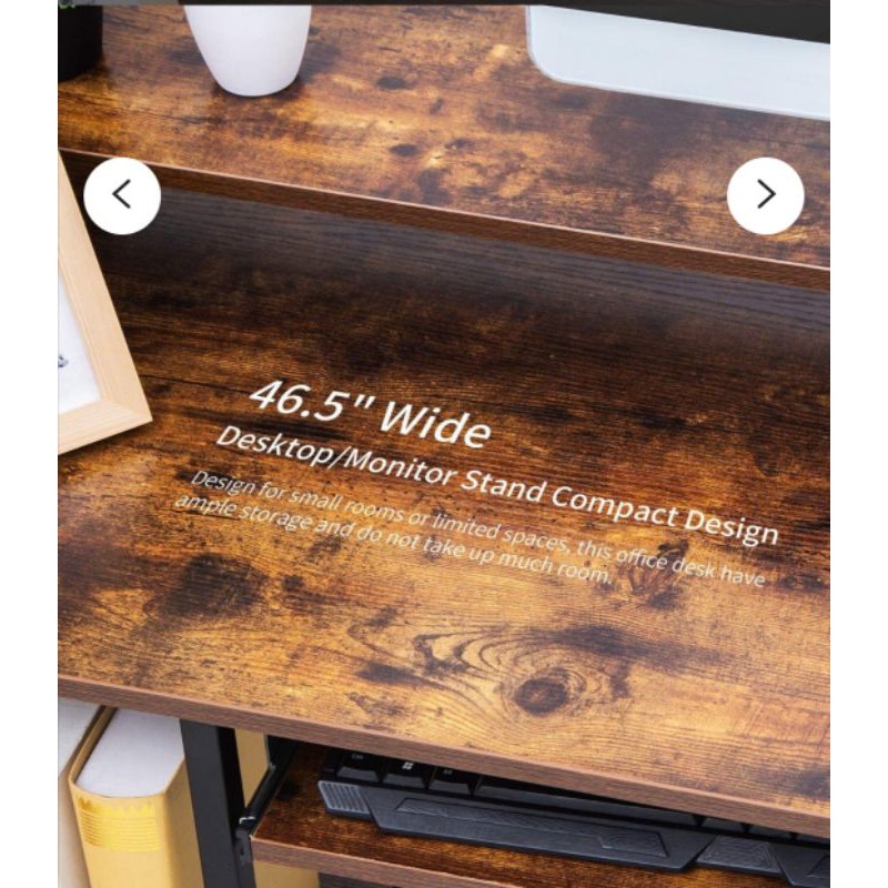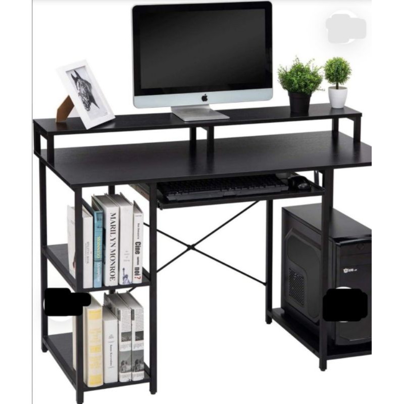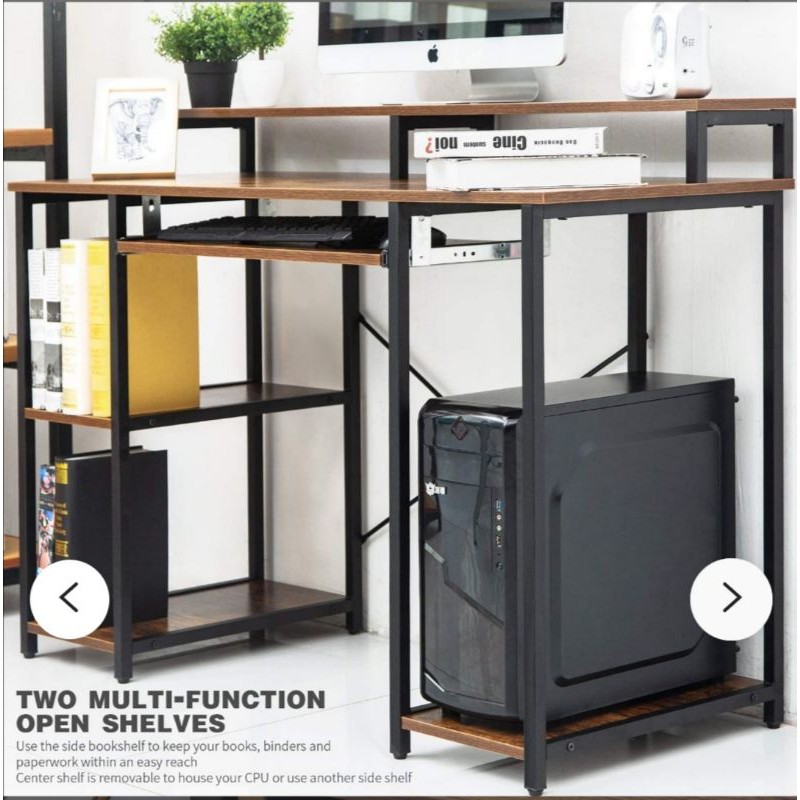 Meja Komputer dengan Rak Penyimpanan / Baki Keyboard / Meja Belajar Industrial