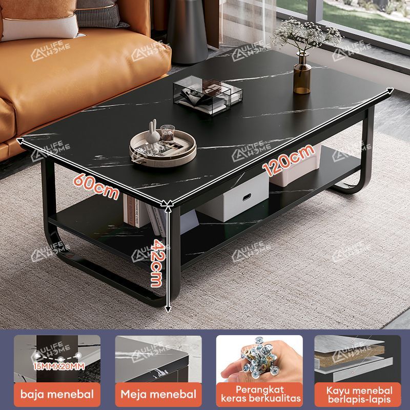 Meja Kopi Minimalis Meja Tamu Besi Meja Samping Meja Motif Marmer Solid Meja Ruang Tamu Meja Coffe 120X60X42CM