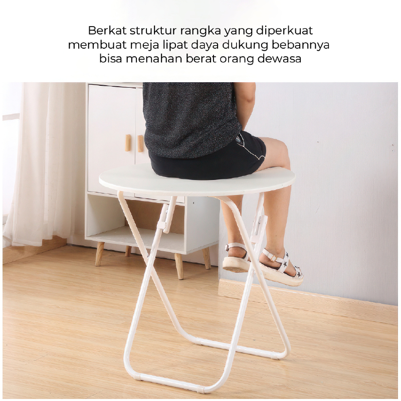 Meja Lipat Portable / Meja Lipat Bulat 60cm / Meja Makan Ruang Tamu Hemat Ruang Desain Modern