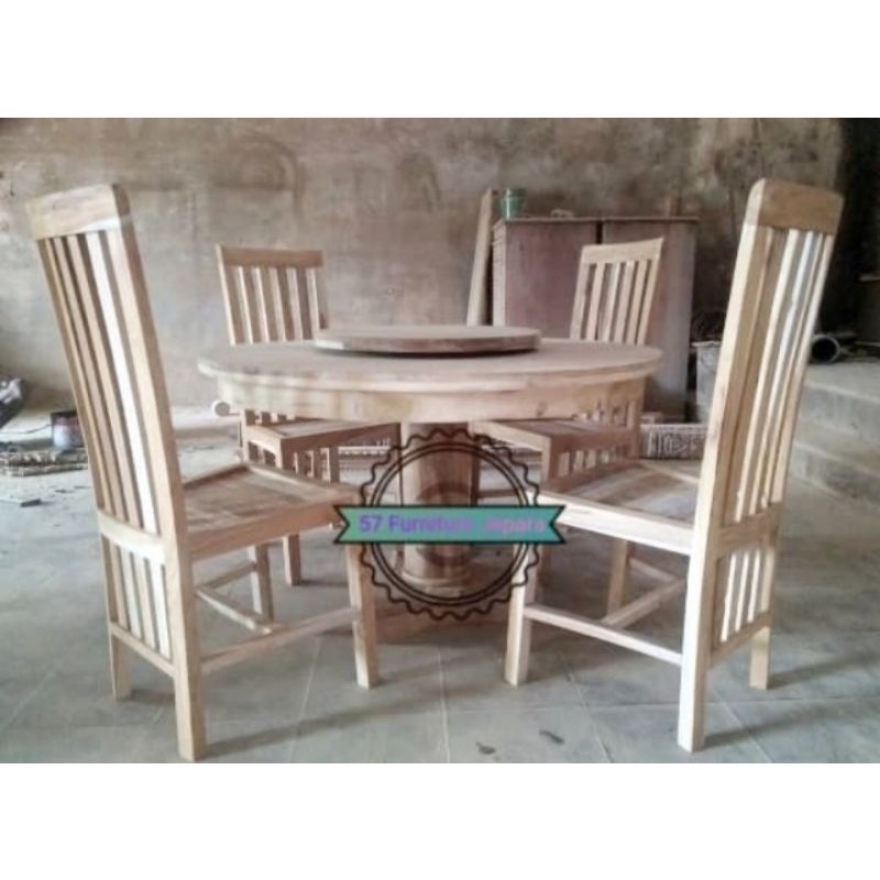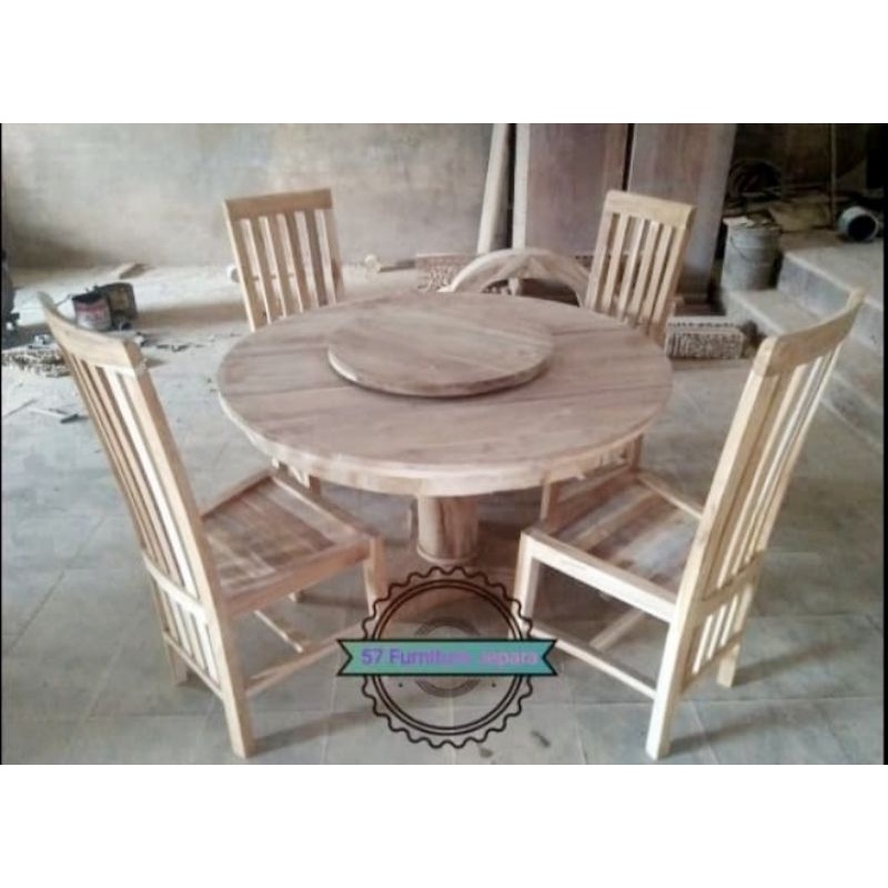 Meja Makan Putar 4 Kursi Minimalis jati - Meja Makan Bundar Besar Jati Mentahan