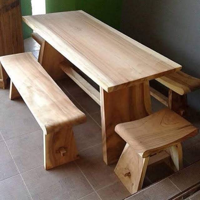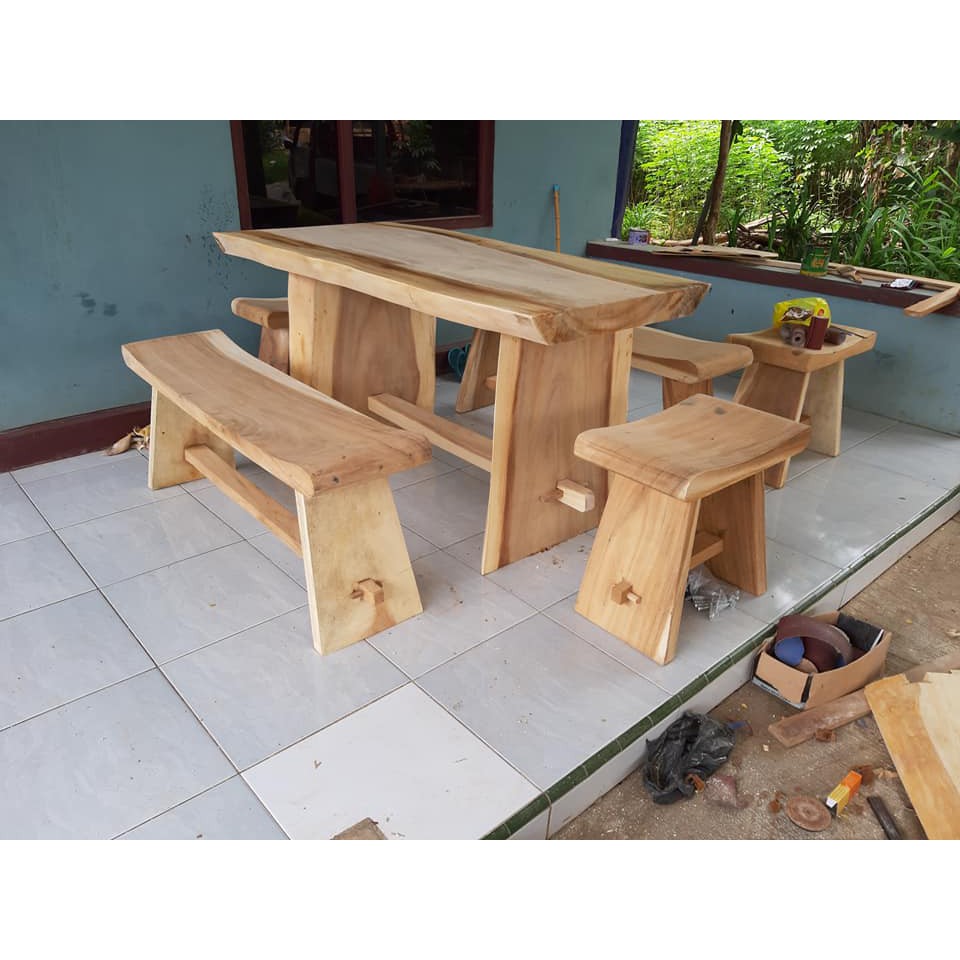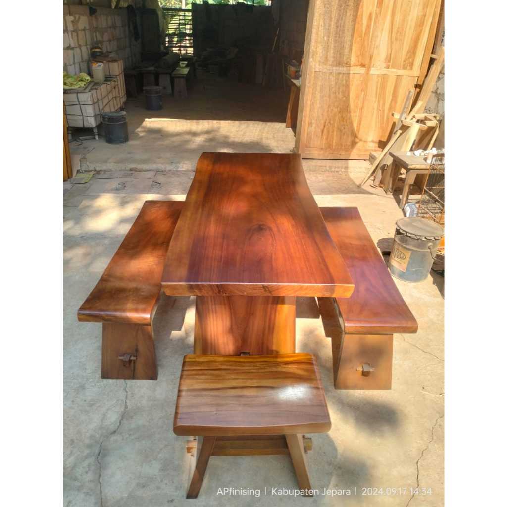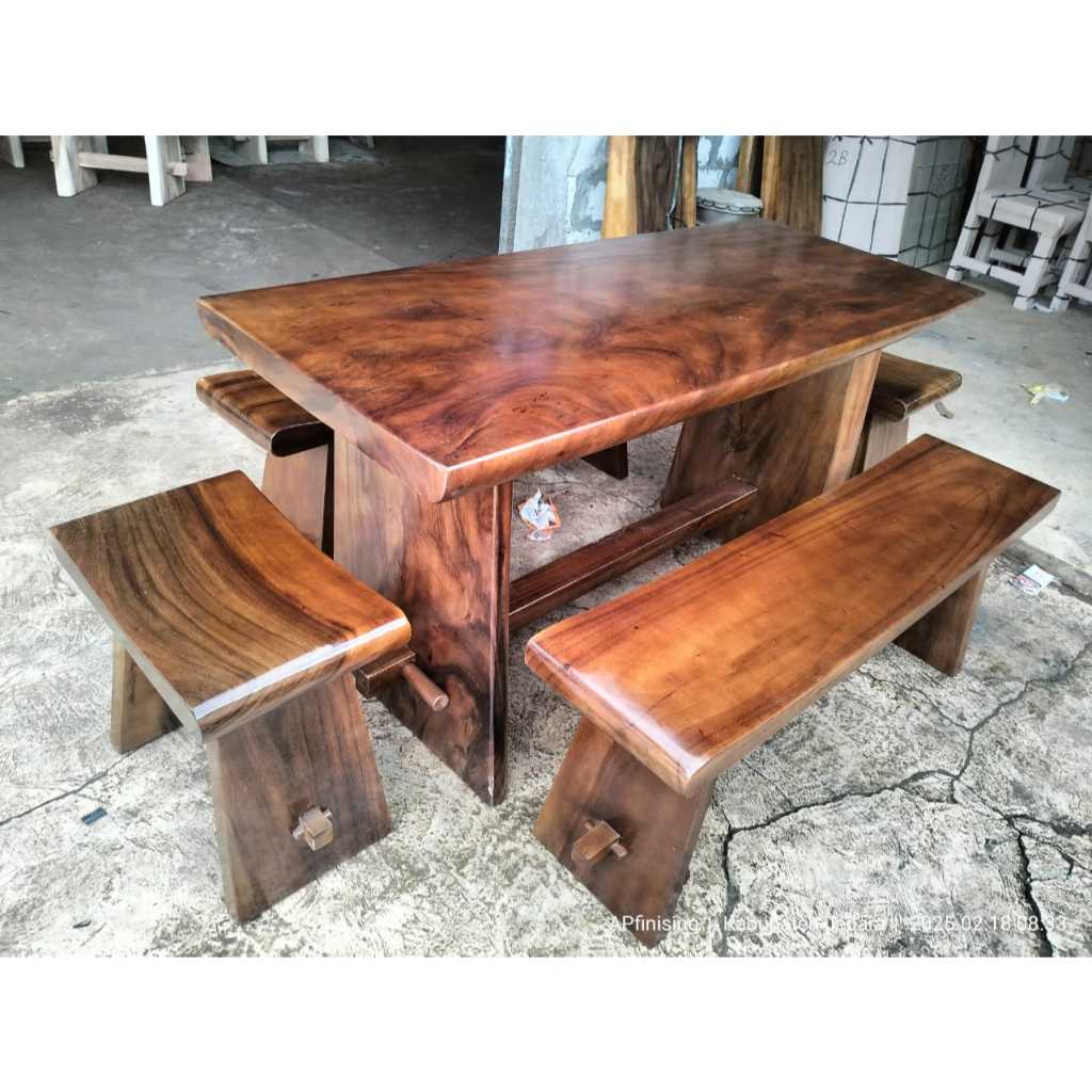 Meja Makan kayu Trembesi utuh solid tanpa sambungan 150x60-70x75