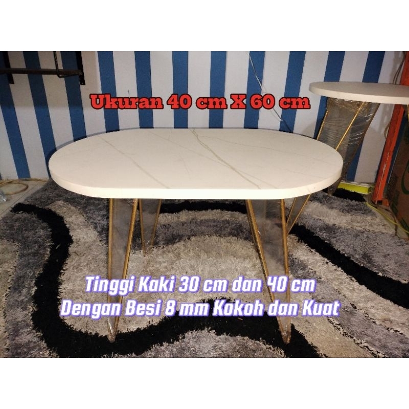 Meja Oval 40x60 cm Lesehan | Scandinavian Meja Kopi Coffe Table / Hairpin Teras Modern Multifungsi