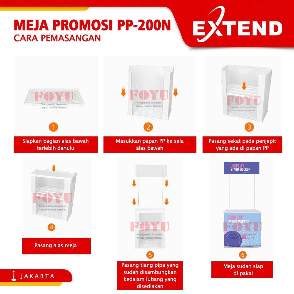 Extend Event Desk Portable Meja Promosi Stand Jualan Booth Workshop Counter Table Pameran Indoor Outdoor PP-200N