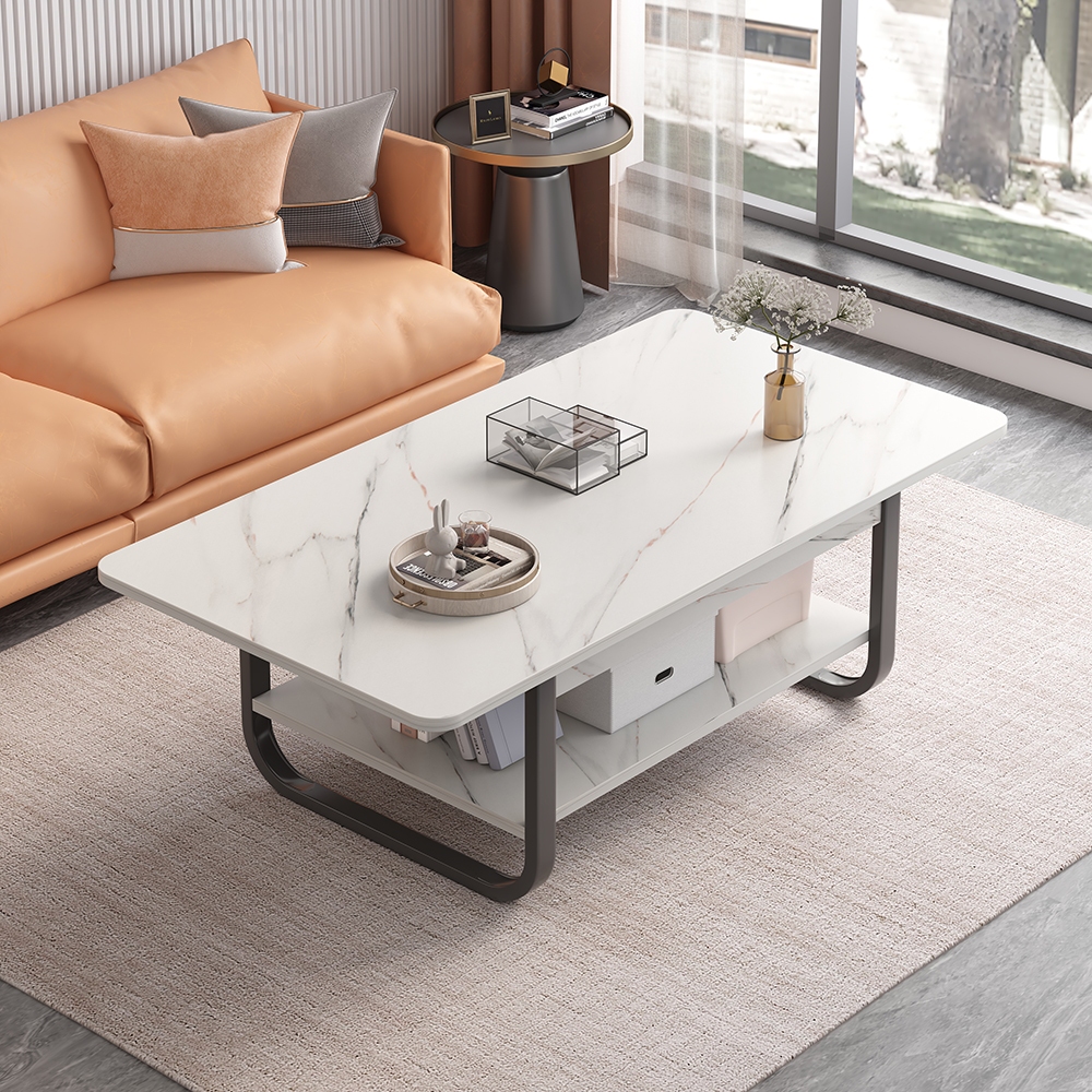 Meja Ruang Tamu 2 Tingkat Meja Cofee Meja Aesthetic Minimalis Meja Serbaguna Meja Motif Marmer Hitam Modern Quality
