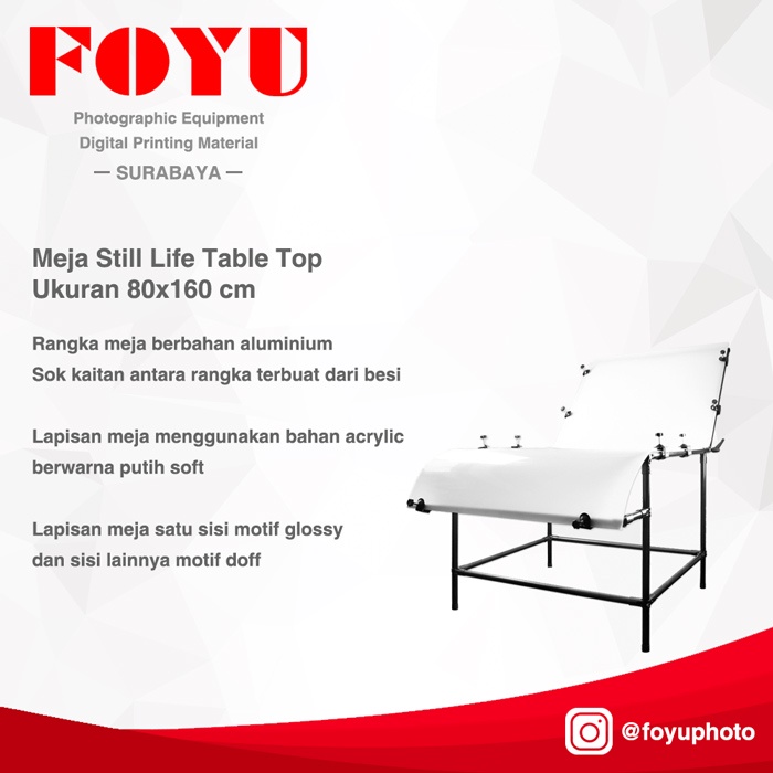 Meja Still Life Table Top Foto Produk Ukuran 80x160 cm