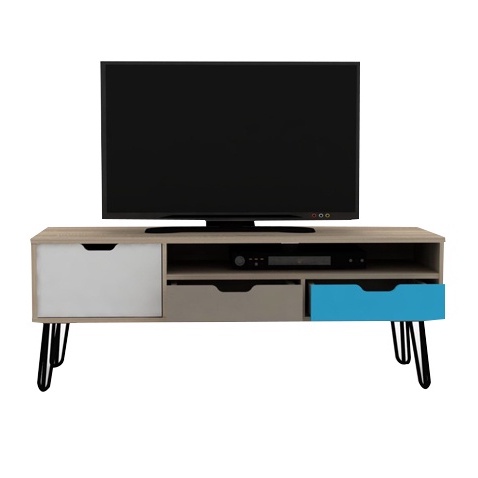 INTERIO Meja TV Video Rack Sonoma Oak Black Text VR-1216.FRM