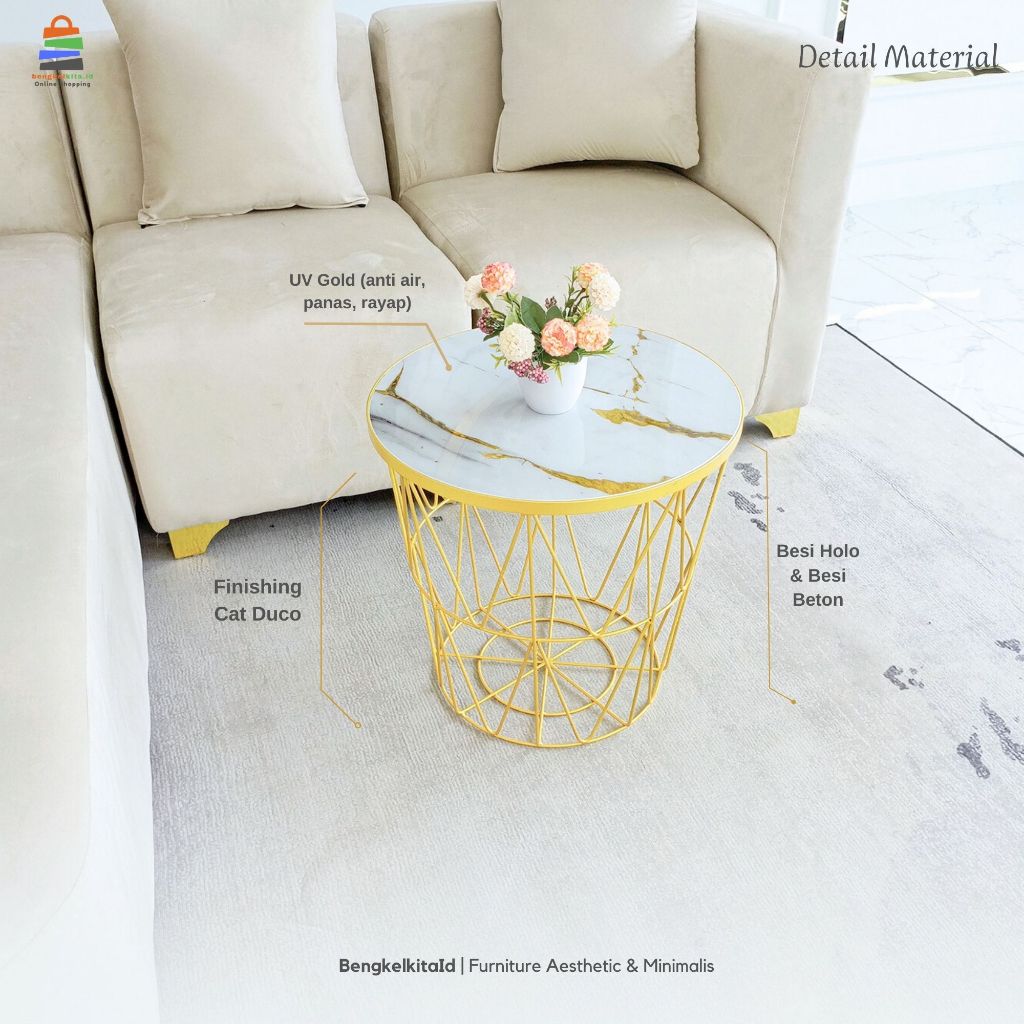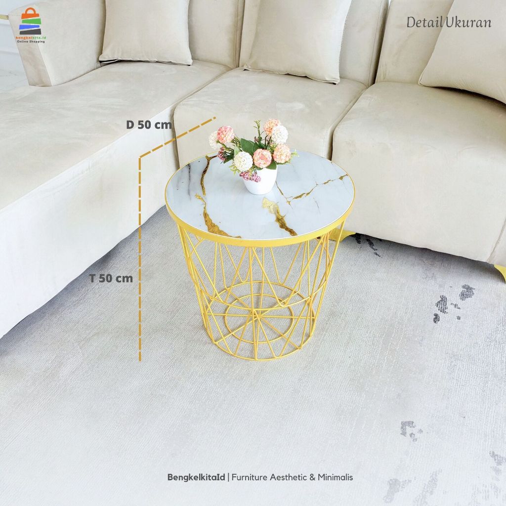 Meja Tamu Minimalis Aesthetic Celia| Meja Sofa Minimalis Aesthetic | Meja Bulat Ruang Tamu Aesthetic