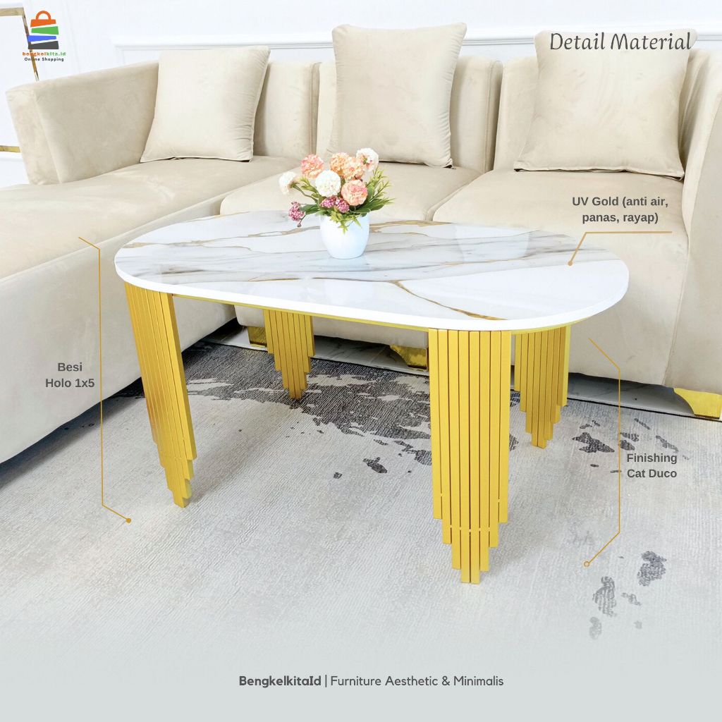 Meja Tamu Oval Farera Minimalis Mewah | Meja Ruang TamuMinimalis | Meja Tamu Aesthetic | Meja Sofa