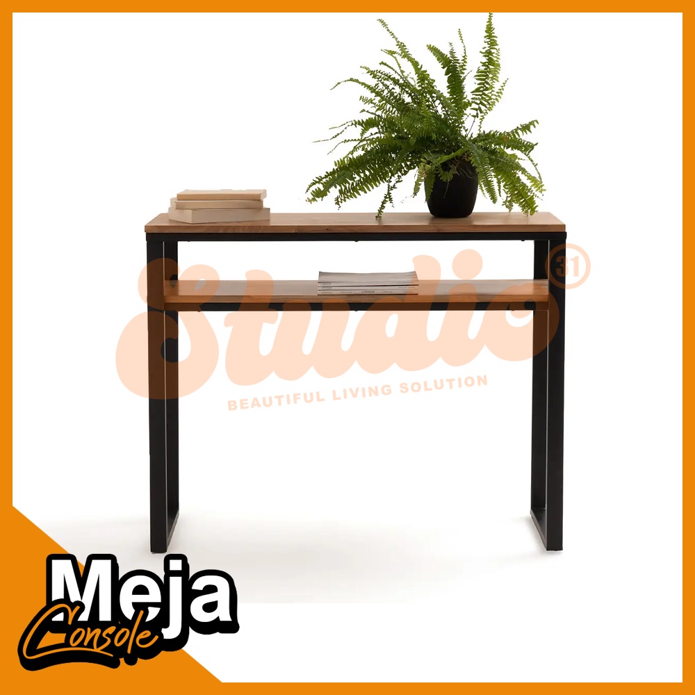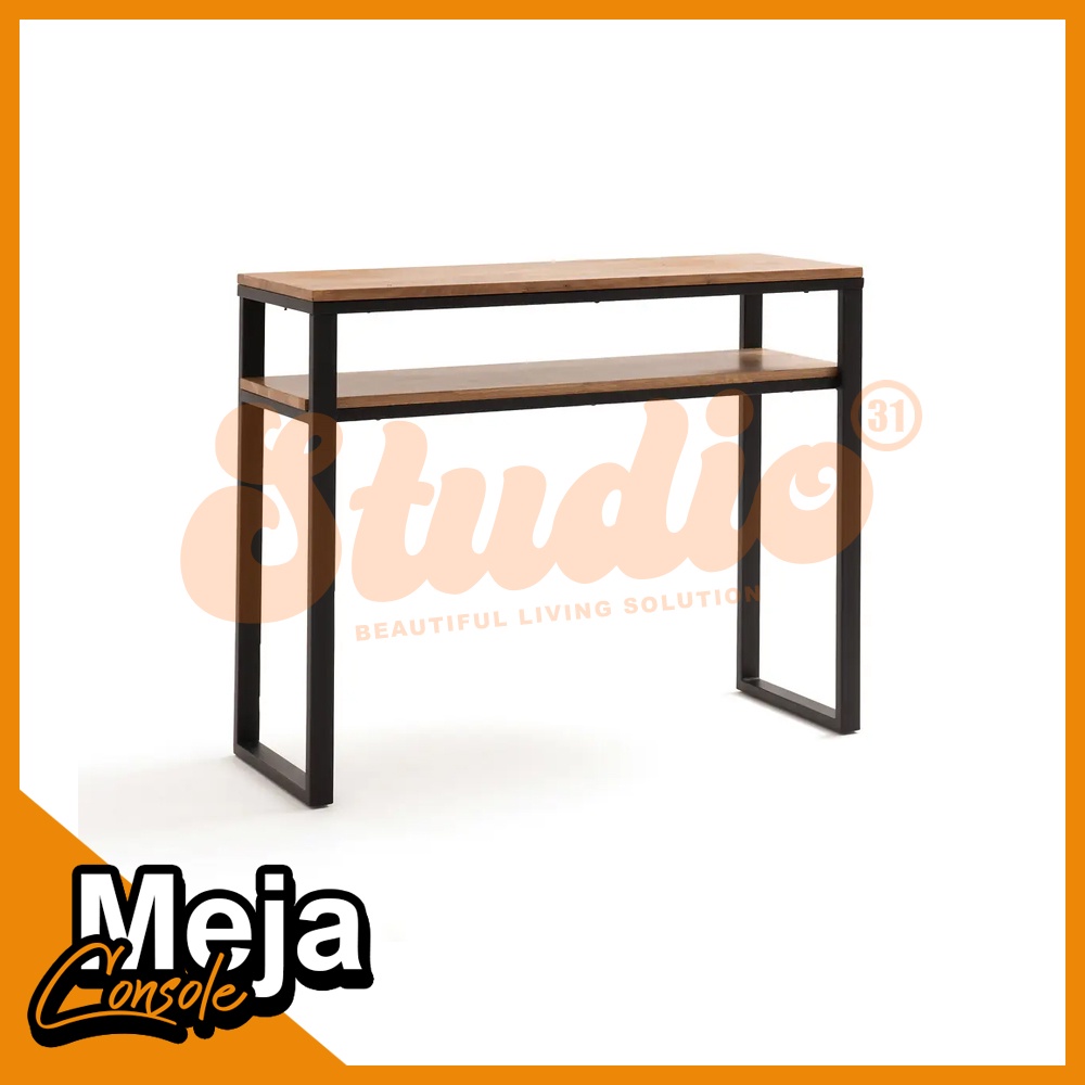 Meja console table / Meja besi kayu / Meja minimalis ruang tamu / Meja TV / meja 2 tingkat / Meja konsol