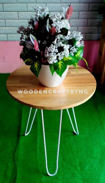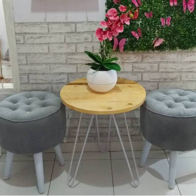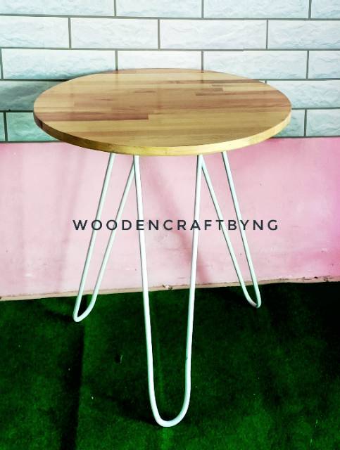 Meja kayu bulat kaki besi - meja minimalis - meja stool