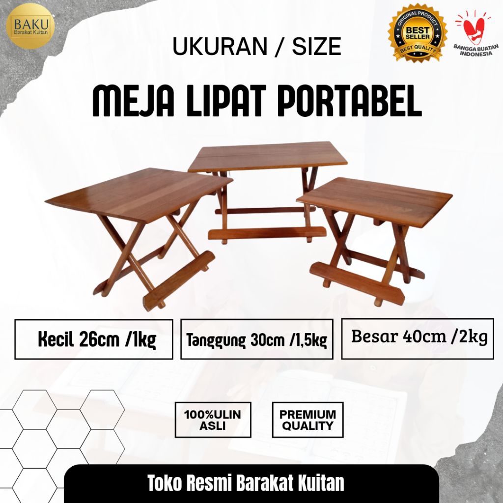 Meja lipat kayu Besi/Meja Mengaji/meja belajar lipat/Meja Laptop/Rehal/Rekal/Lekar Dampar kayu Ulin (kayu_besi)