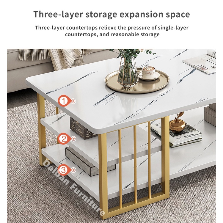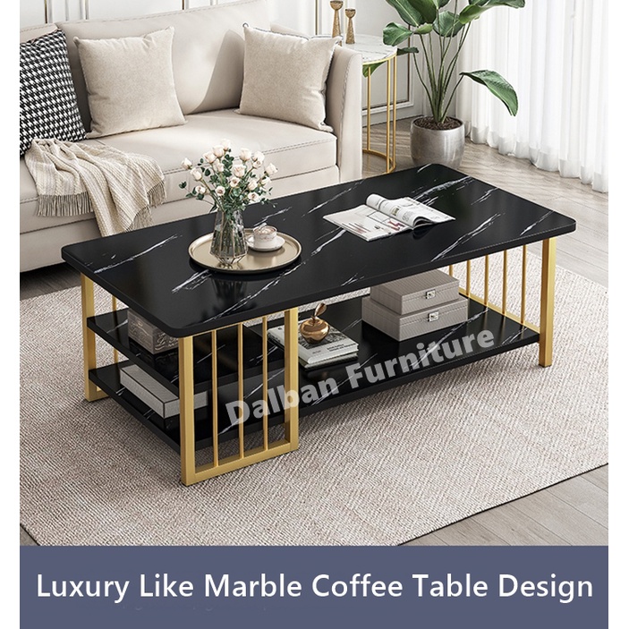 Meja Ruang Tamu Minimalis 3 Layer Meja Tamu Susun Rangka Besi Motif Marmer