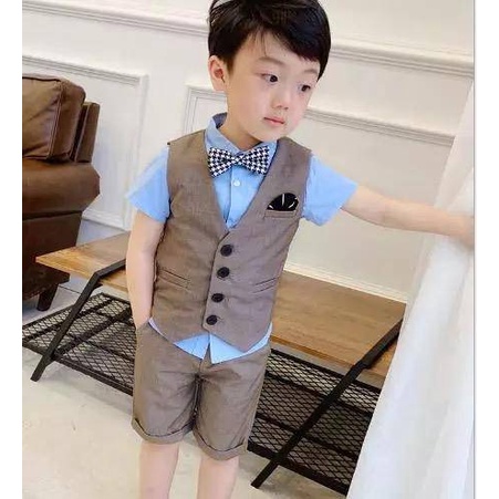 Melly81 Setelan Anak Laki SET VESTFOUR 3in1 3-5 Tahun Vest Four Kemeja Stelan Kid Kids Cowok Jas Blazer