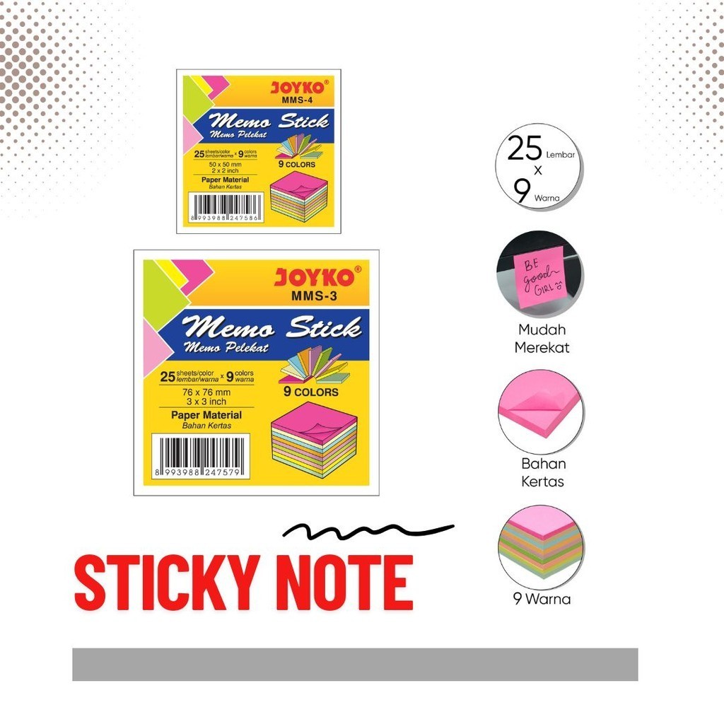 Memo Stick / Sticky Note Joyko MMS-654P Soft Color 76 x 76 mm - Pak (100 lembar)