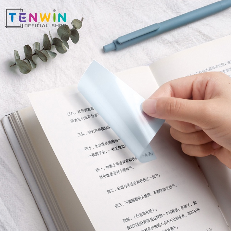 Memo koreksi stiker label transparan Sticky Notes Transparan 50 lembar Tahan Air Untuk Kantor / Plastik Dapat Ditulis Permukaan Halus /Sticky Note Transparent-Tenwin