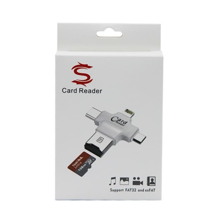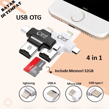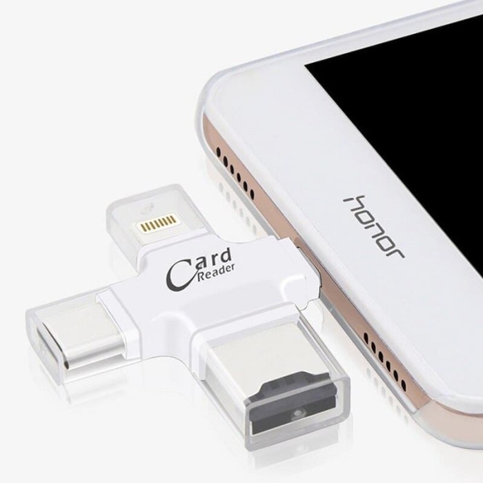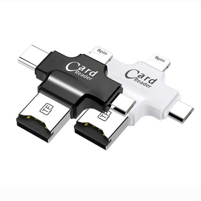 Memori Card Reader 4 in 1 Micro SD Card Reader Tipe-C/Lightning/Micro - Hitam