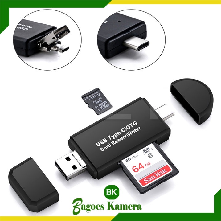 Memory Card Reader OTG 3 in 1 USB Type C + USB Type A + Micro USB - Card Reader Untuk USB Type-C, USB Type A dan micro USB SD / Micro SD / TF Mini OTG