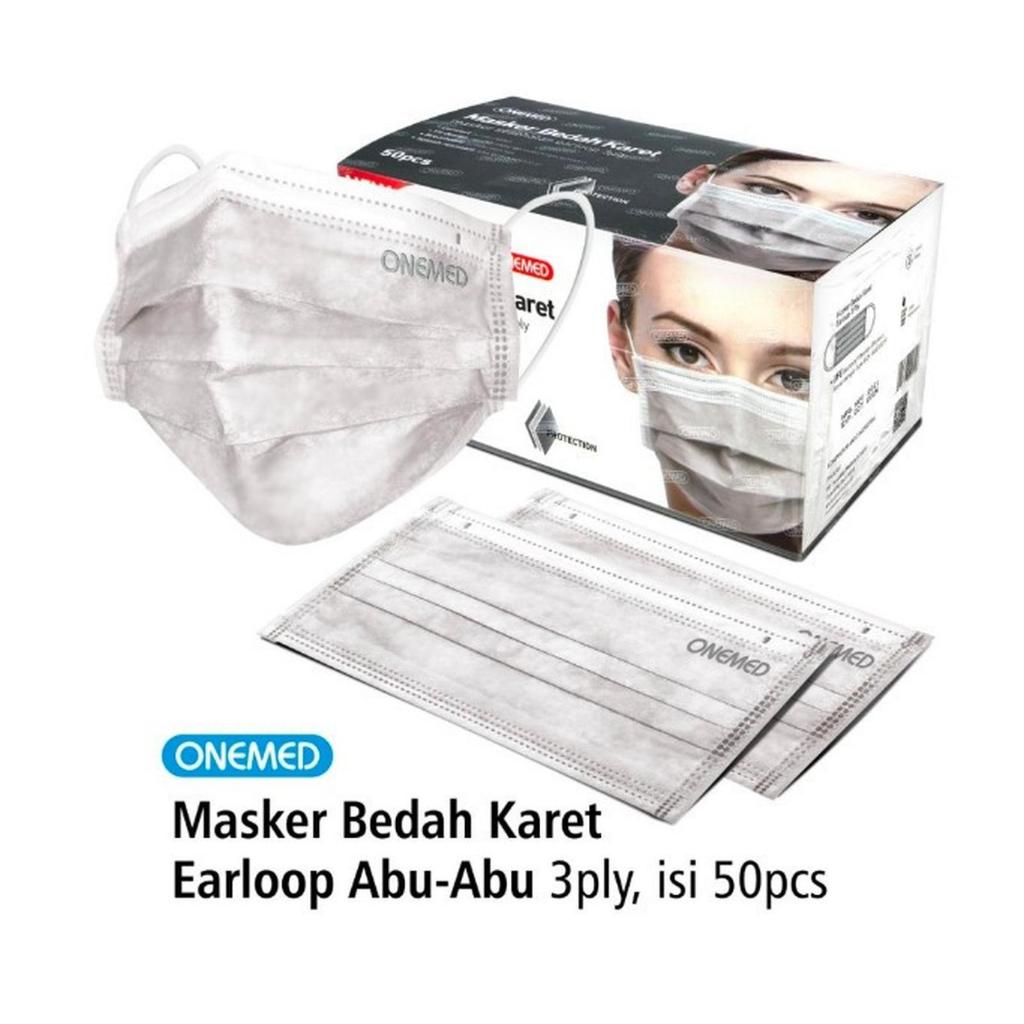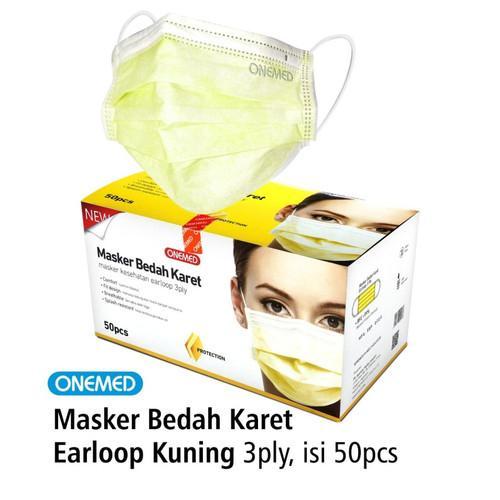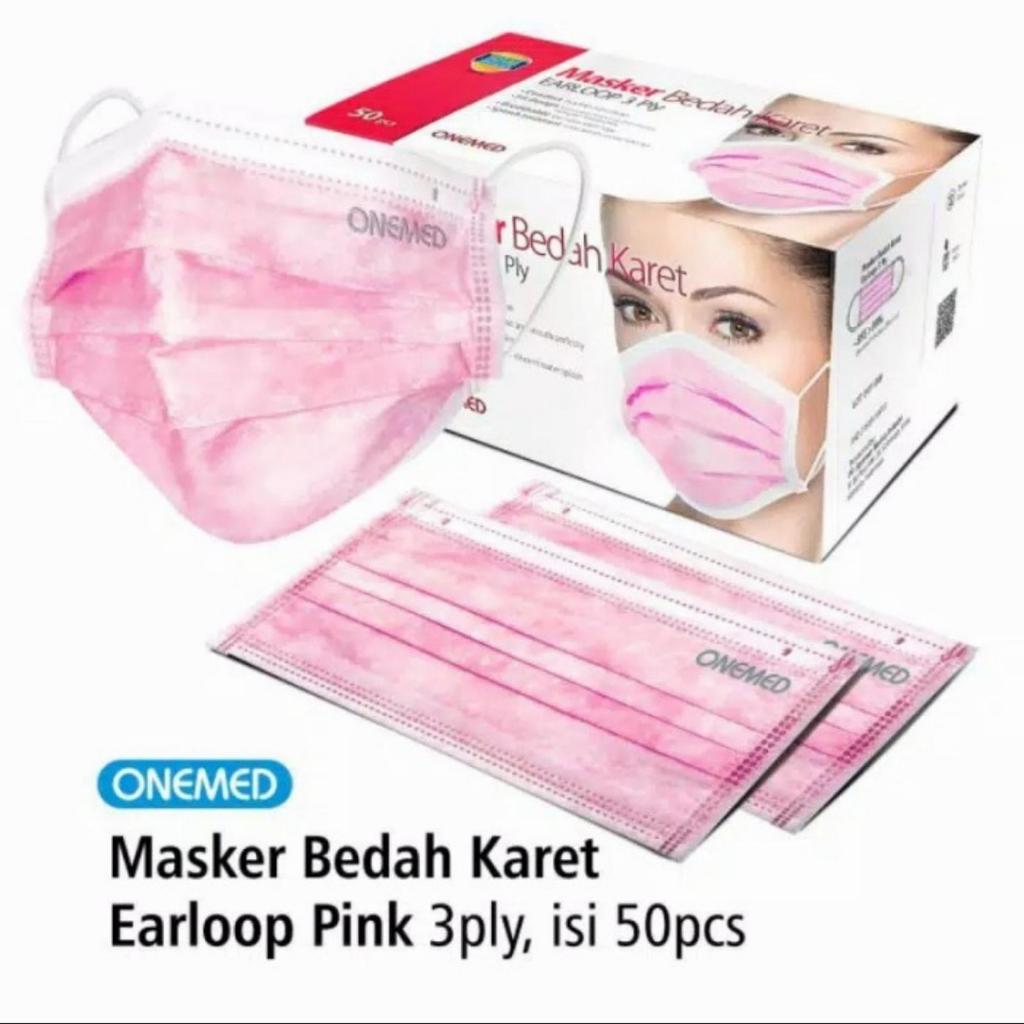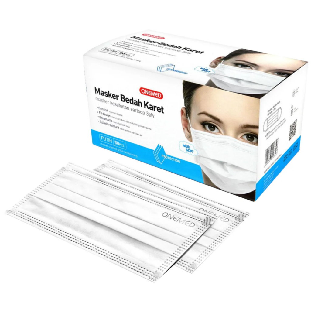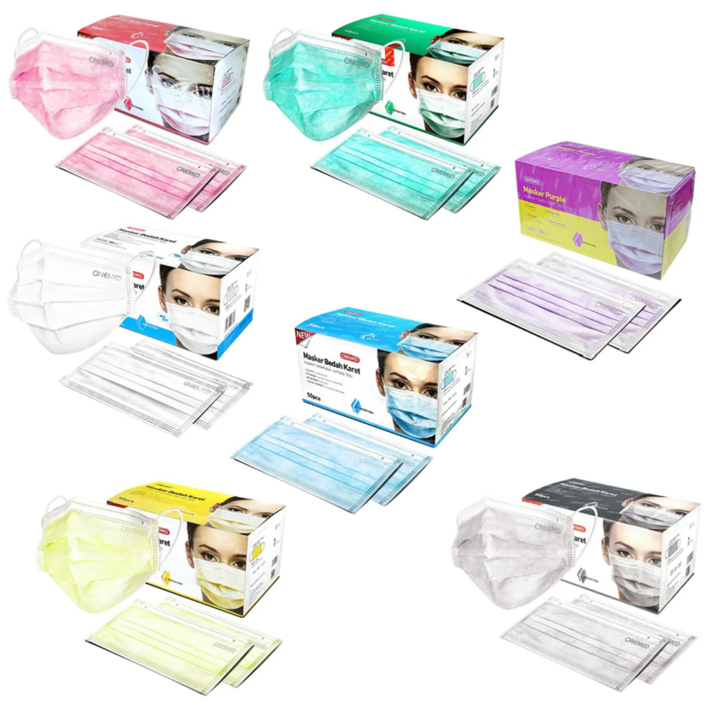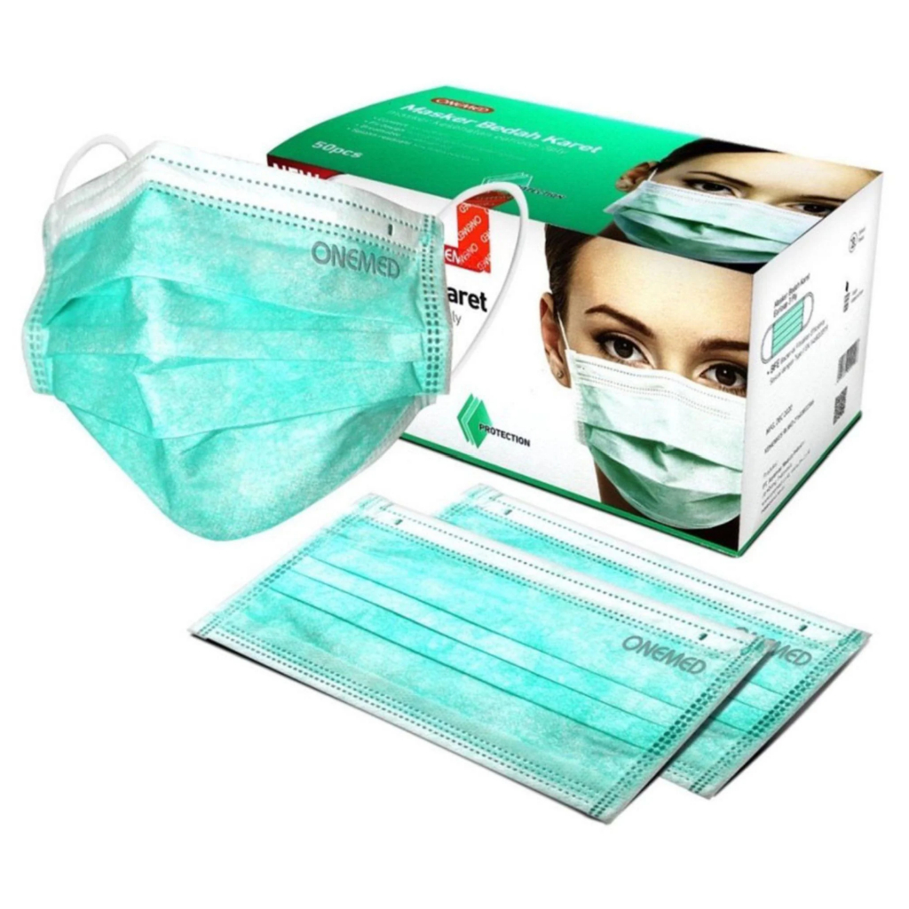 ONEMED SURGICAL FACE MASK MASKER KARET BEDAH MEDIS HIJAU PUTIH BIRU 3PLY EARLOOP 1 Box Isi 50pcs