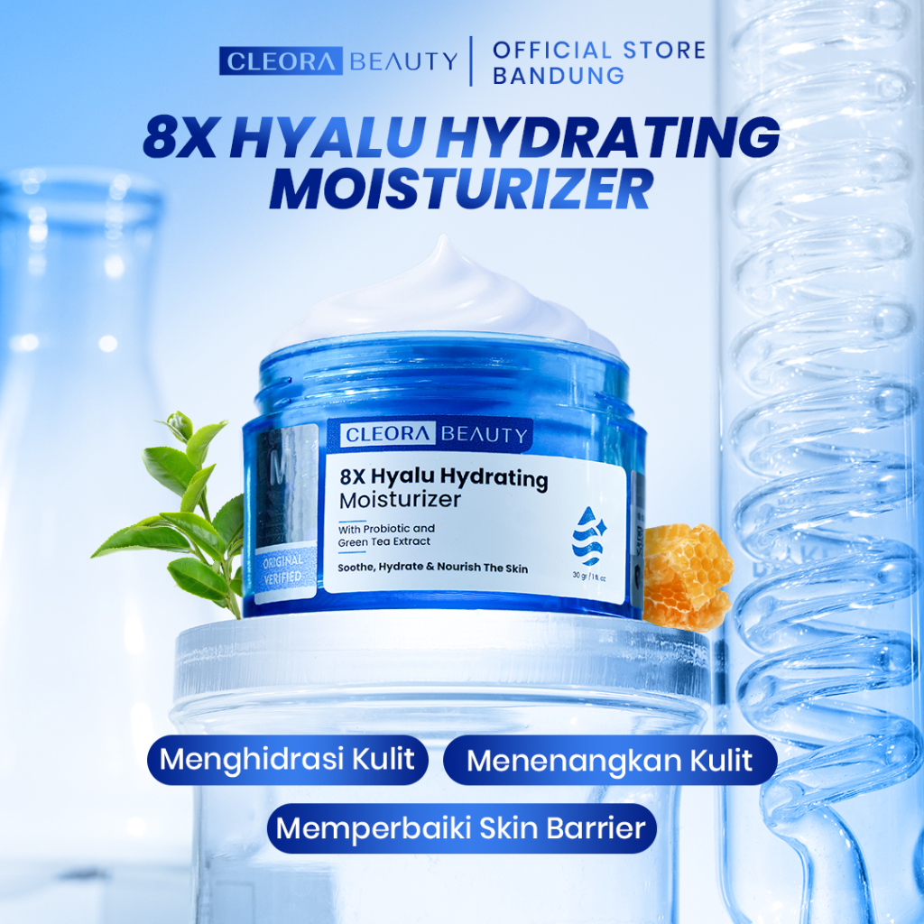 [SALE] Cleora 8x Hyalu Hydrating Moisturizer - Pelembab Muka Kering Dan Kusam Scincare Gel untuk Mencerahkan Kulit Dark Spot Whitening Mosturizer Skin Barrier Calming Brightening Skincare Wajah Facial Day Cream and Night Pria Dan Wanita