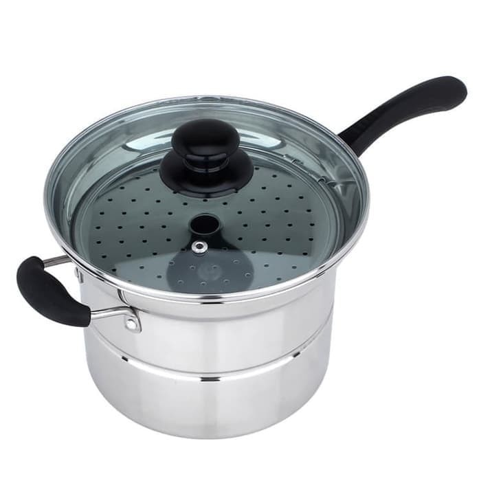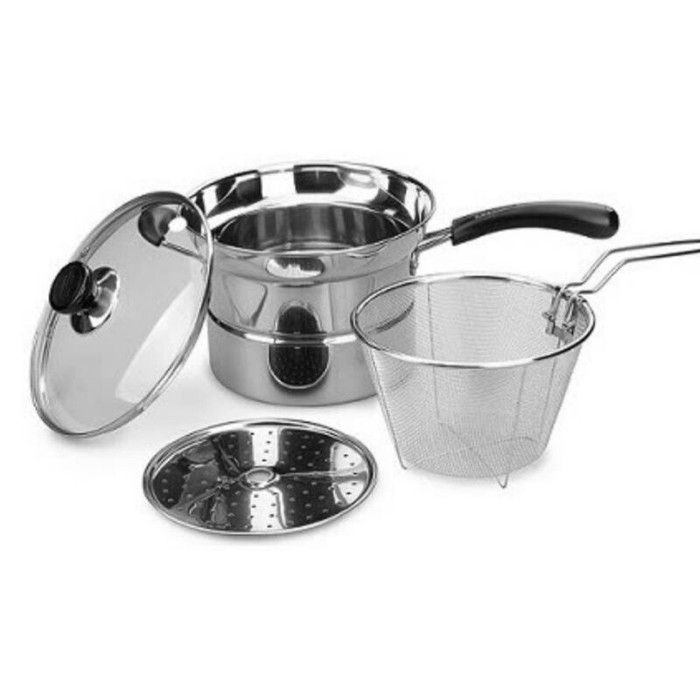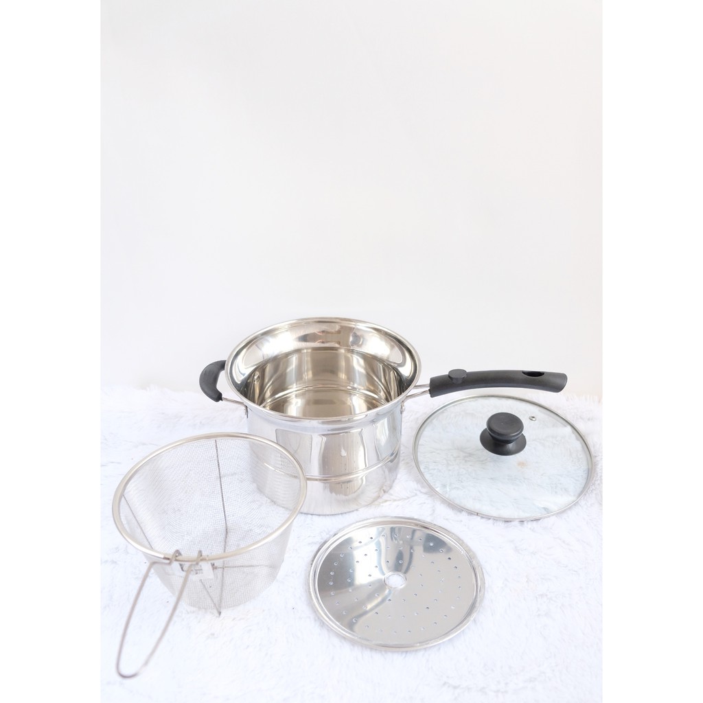 Stainless Steel Tebel 304 Panci Korea Set 3 in 1 22 Deep Fryer Kukus Goreng Pengoreng Kukusan 22cm