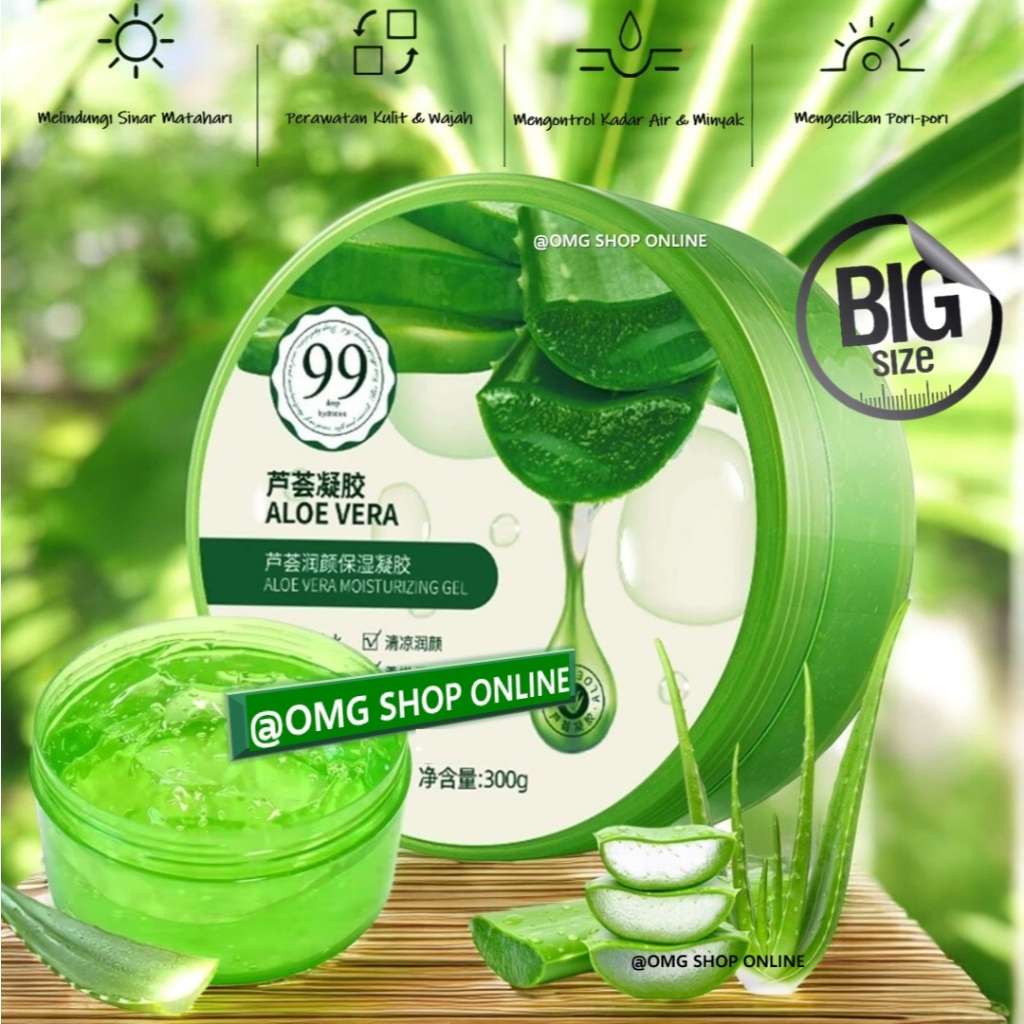 Aloe Vera Gel Soothing 99% Ukuran Besar 300 ml / Moisturizer Aloe Vera Gel Ori untuk Wajah Glowing Masker Wajah Pelembab Gel Untuk Masker Rambut Bibir Kering Masker Mata Panda Skincare Terbaik Kualitas Mirip Nature Republic Aloe Vera Soothing Gel