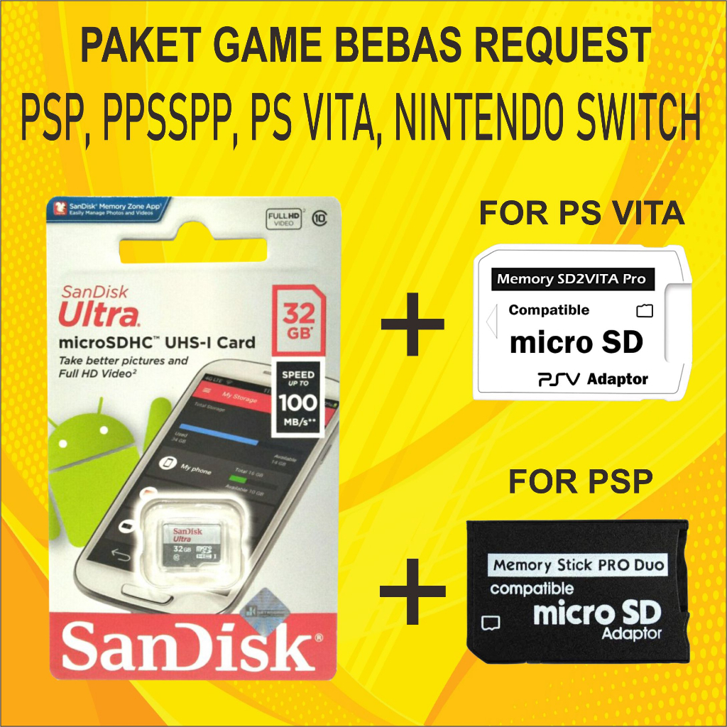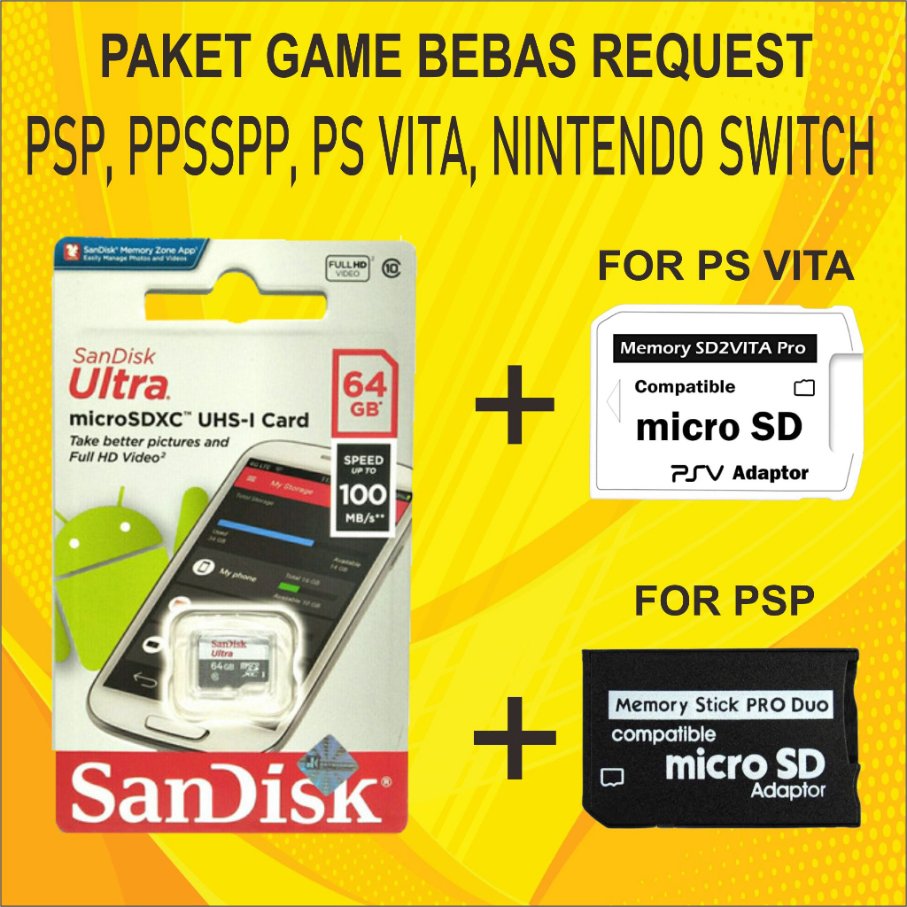 Memory memori Psp Ps Vita 32GB 64GB 128GB 256GB 512GB Full Game Bebas Request Plus Adapter Photofast Produo Sd2vita