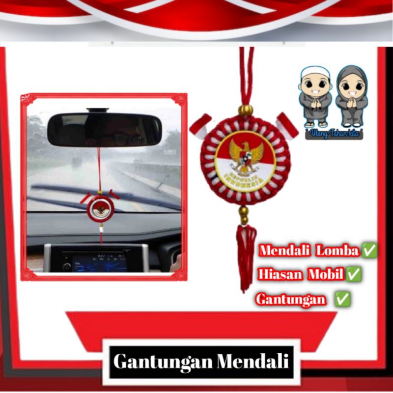 Mendali merah putih berlogo Garuda,mendali merah putih hiasan mobil,mendali agustusan,mendali dekorsi