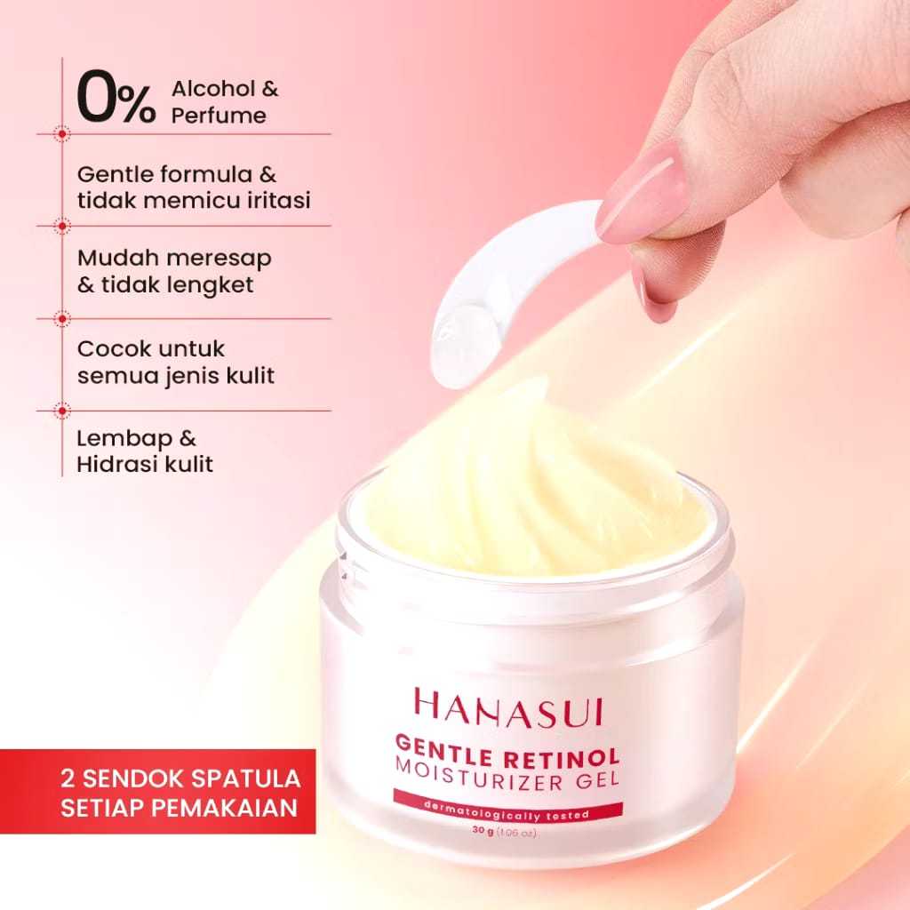 HANASUI Gentle Retinol Moisturizer Gel 30g - Pelembab Gel Lembap & Cegah Tanda Penuaan Dini - 3 Retinol Complex