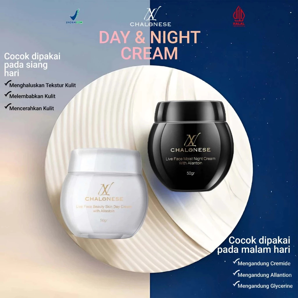 CHALONESE 1 SET WHITENING MOISTURIZER DAY & NIGHT CREAM Membantu Membuat Wajah Lebih Lembab Cerah serta Fresh 50gr