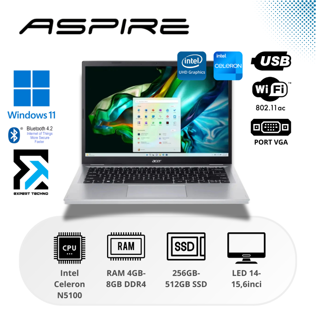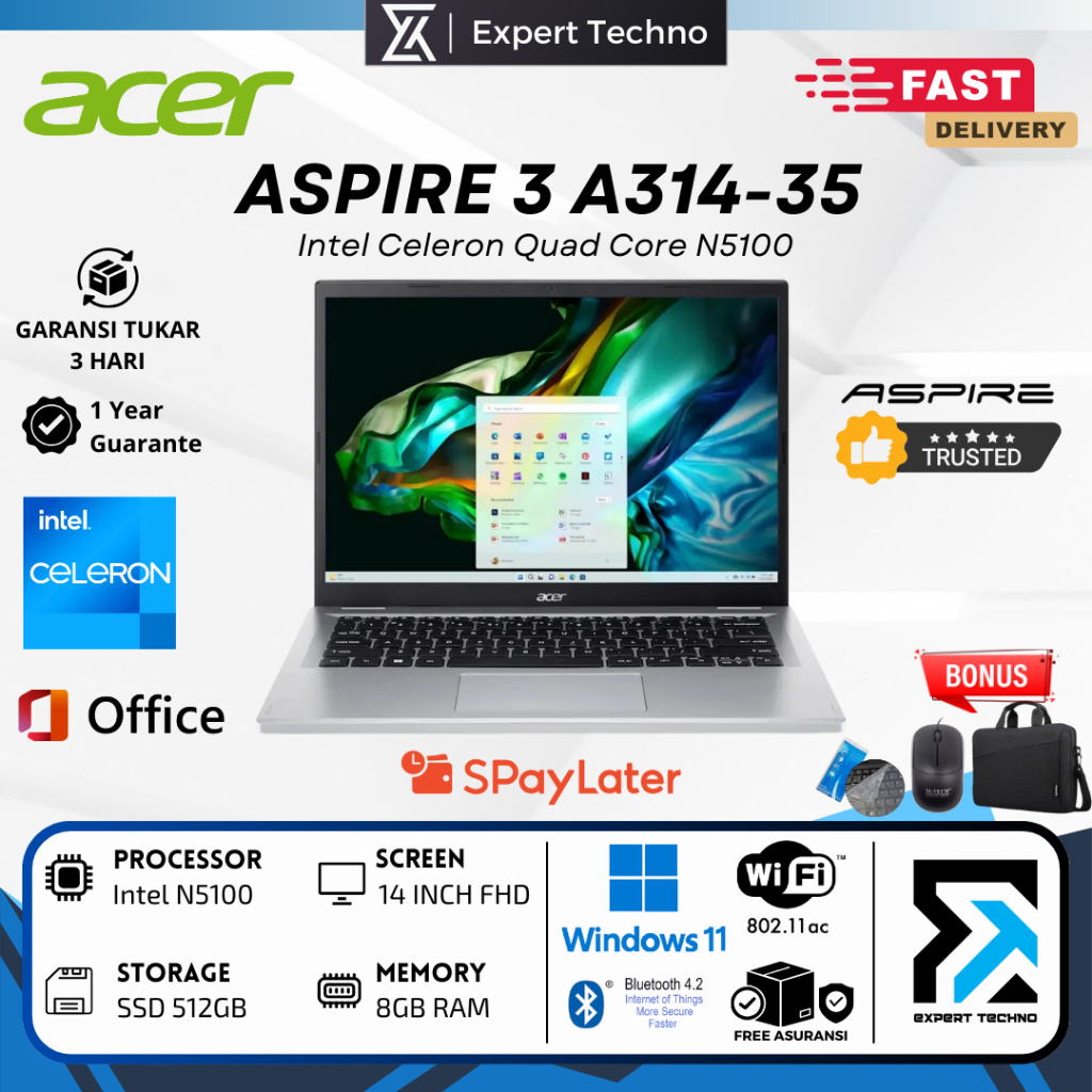 ACER ASPIRE 3 A314-35 INTEL CELERON N5100 8GB RAM 512GB SSD 14" HD Windows 11