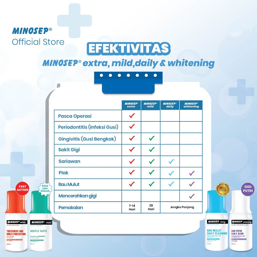 Minosep Obat Kumur Antiseptik 200ml 4botol Sakit Gigi Sariawan Gusi Bengkak Perawatan Gigi Harian