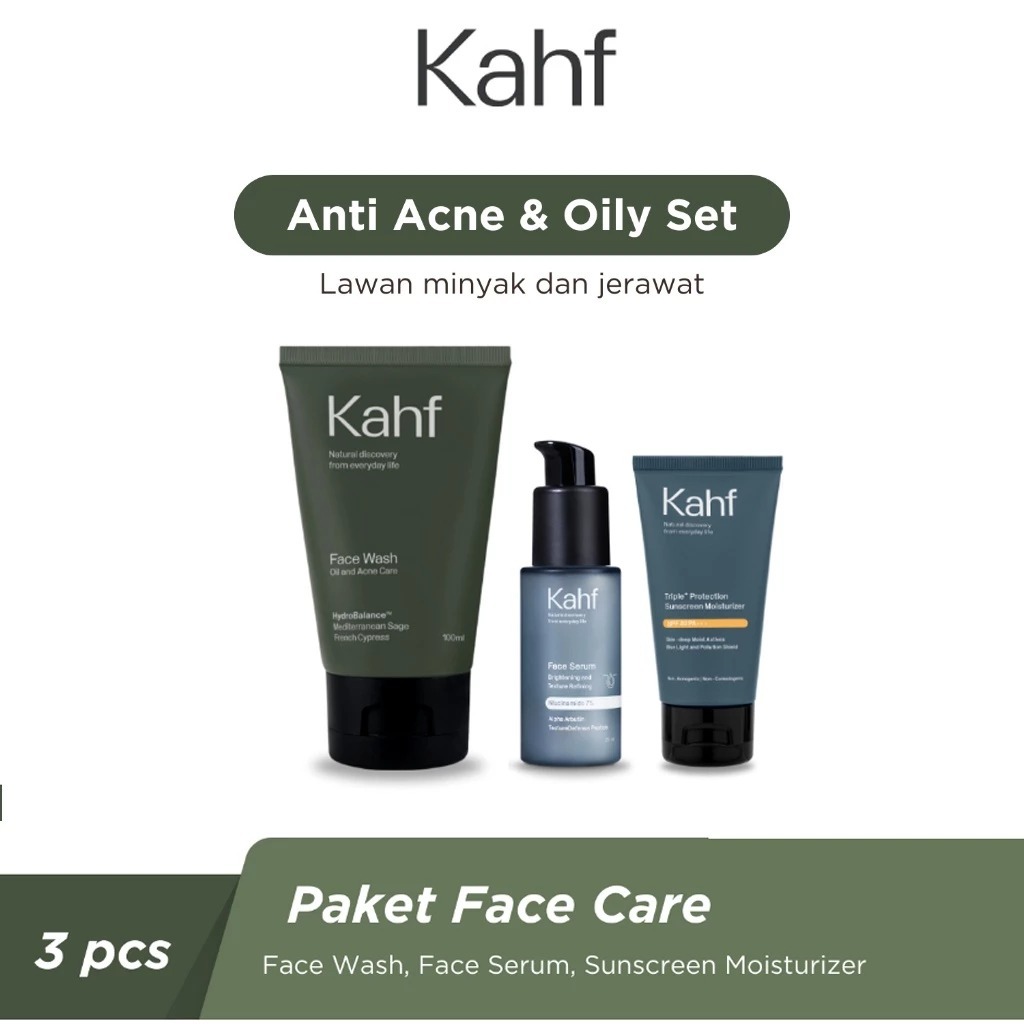 KAHF Paket Basic Skincare Untuk Pria Face Wash + Serum + Sunscreen SPF 30 PA+++Paket Skincare Pria