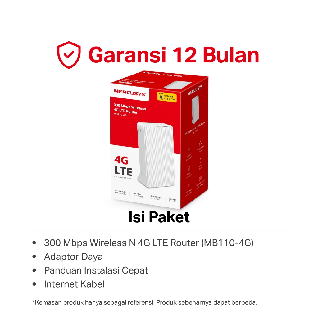 Mercusys | MB110-4G | 300Mbps LTE Modem | 4G Wi-Fi Router | IPTV | IPv6 | Plug and Play | SIM Card