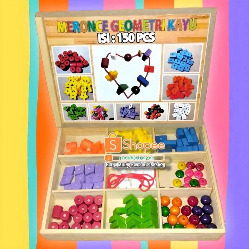 Meronce Geometri Kayu Isi 150pcs (9 Bentuk)